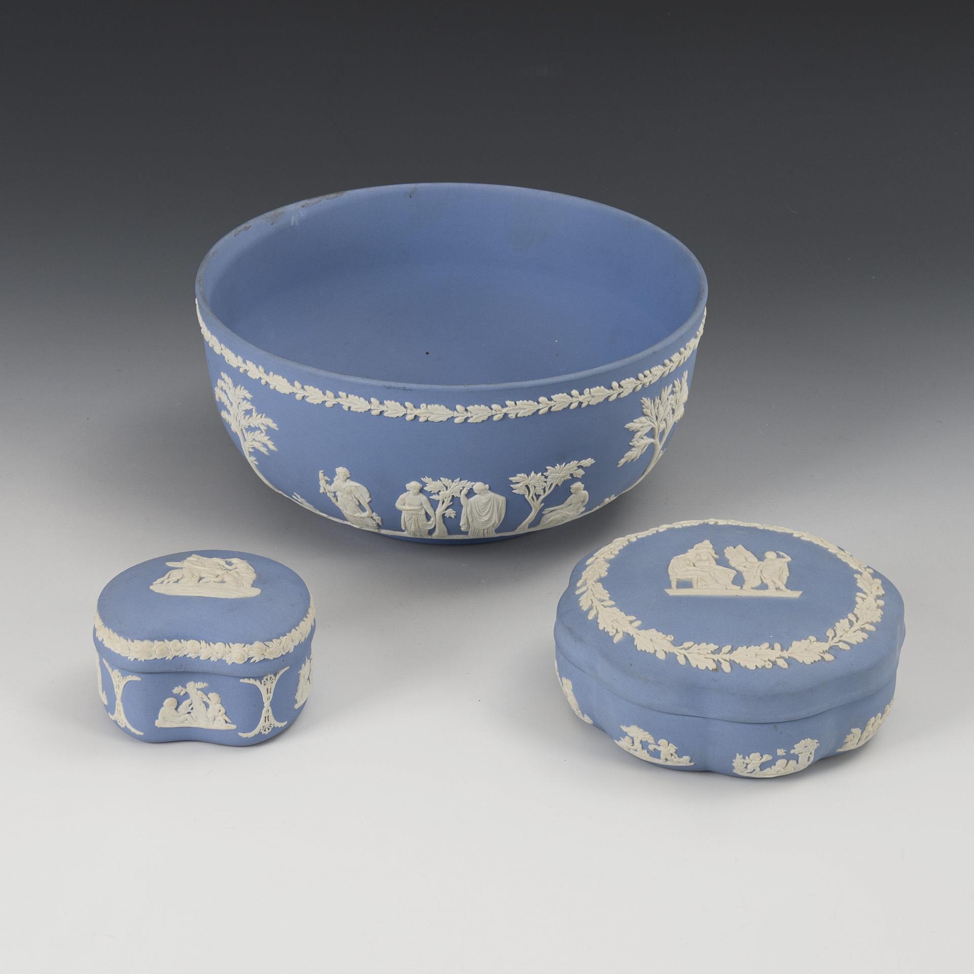 1 Schale und 2 Dosen. Wedgwood.