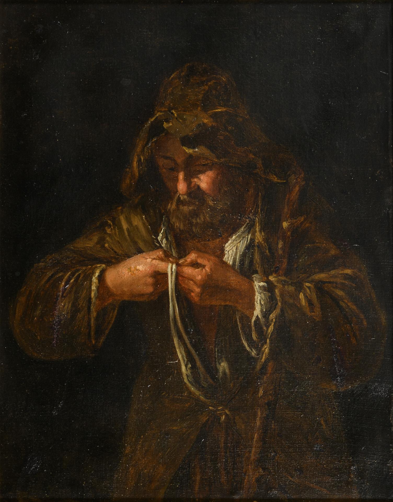 Bildnis eines Mannes mit Bart und in der Kleidung eines Fischers vor dunklem Hintergrund. Retuschiert.