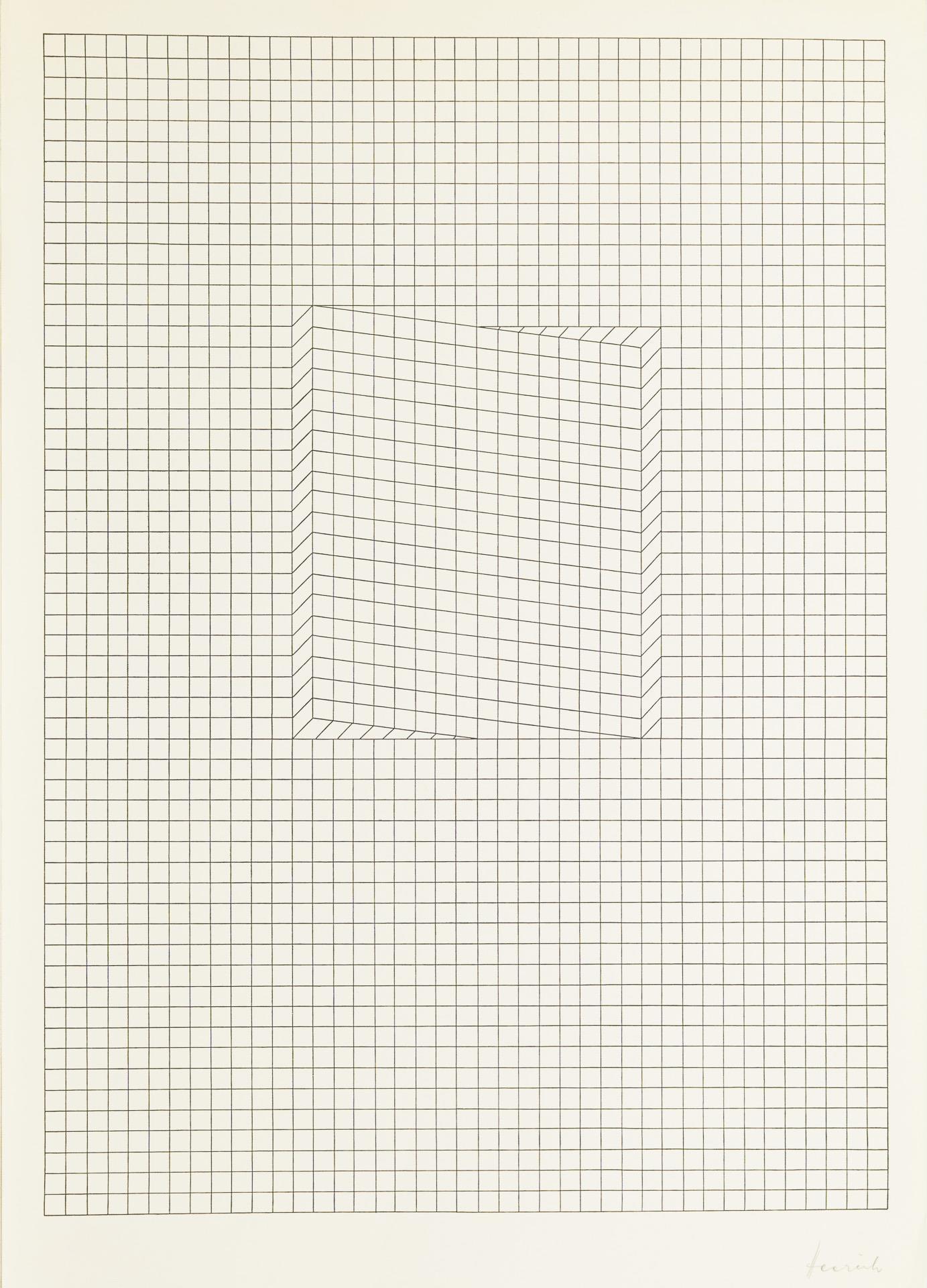 Grafiken im freien Bereich isometrischer Gesetzmäßigkeit, konstruktivistische Kompositionen. Wohl im Kunstverein Paderborn erschienen.