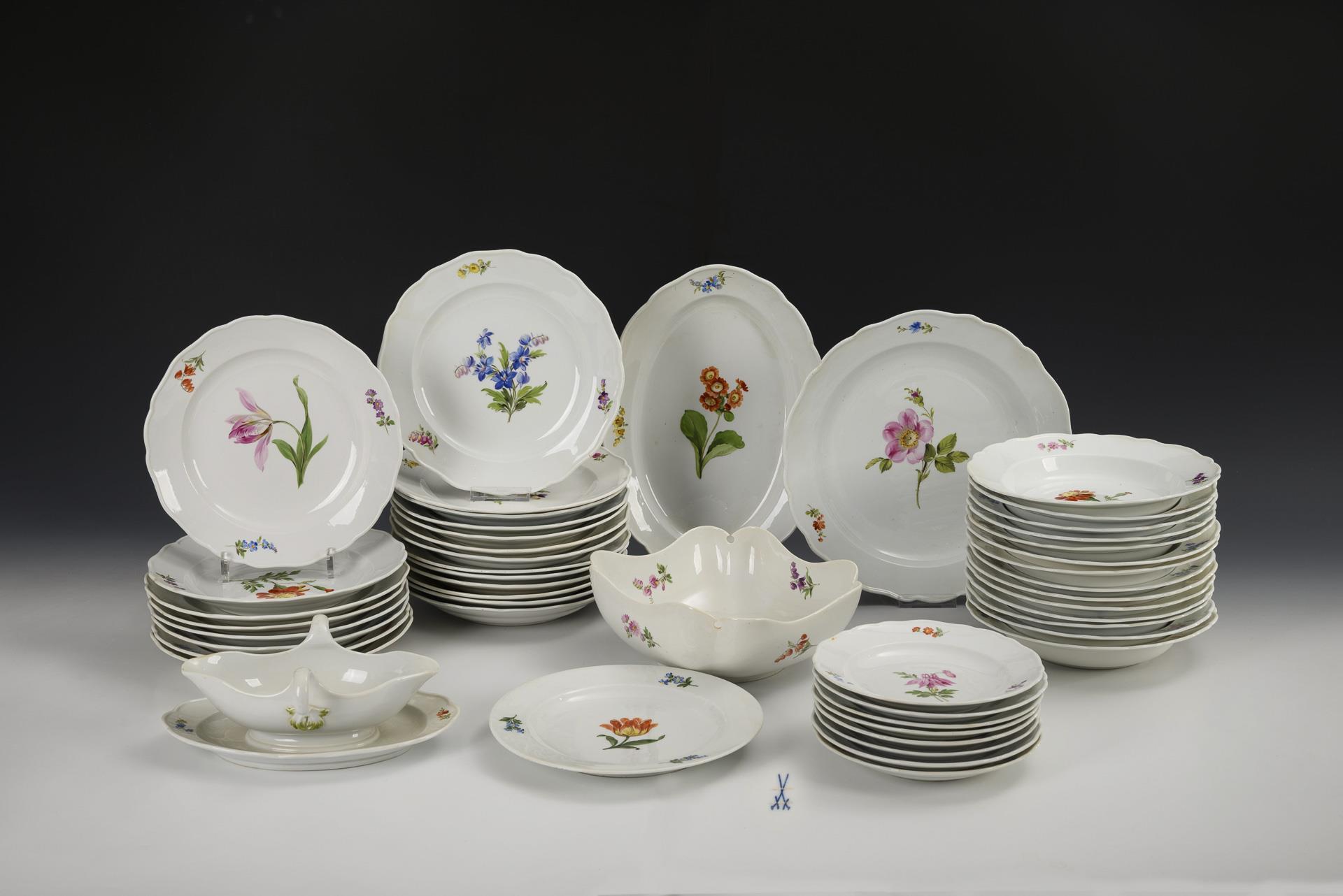 48 Teile eines Speiseservice mit Blumenmalerei. Meissen.