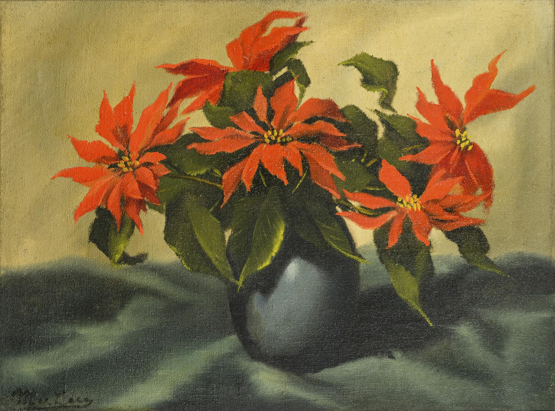Undeutlich signiert: Stillleben mit Weihnachtsstern