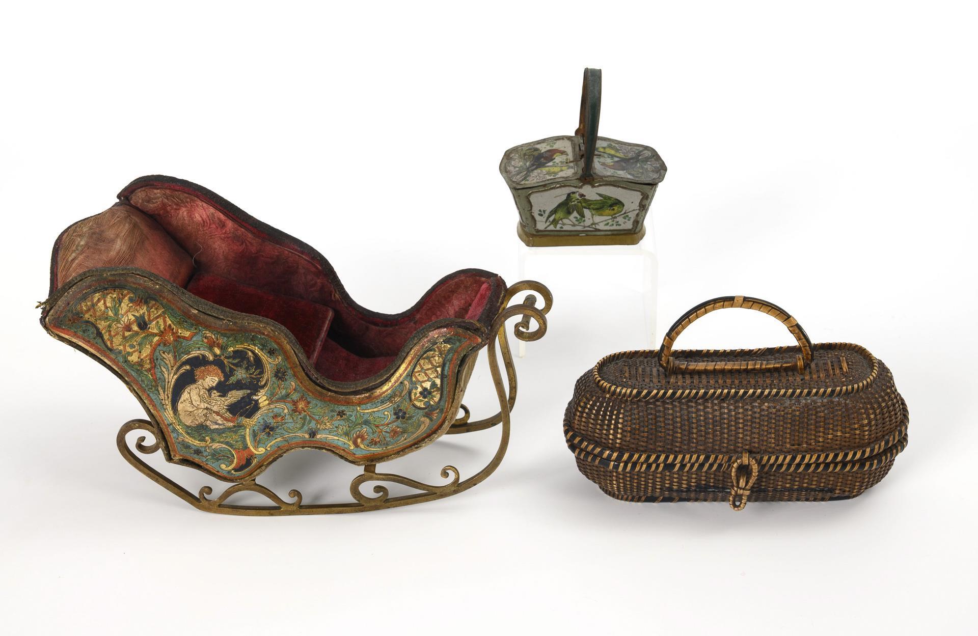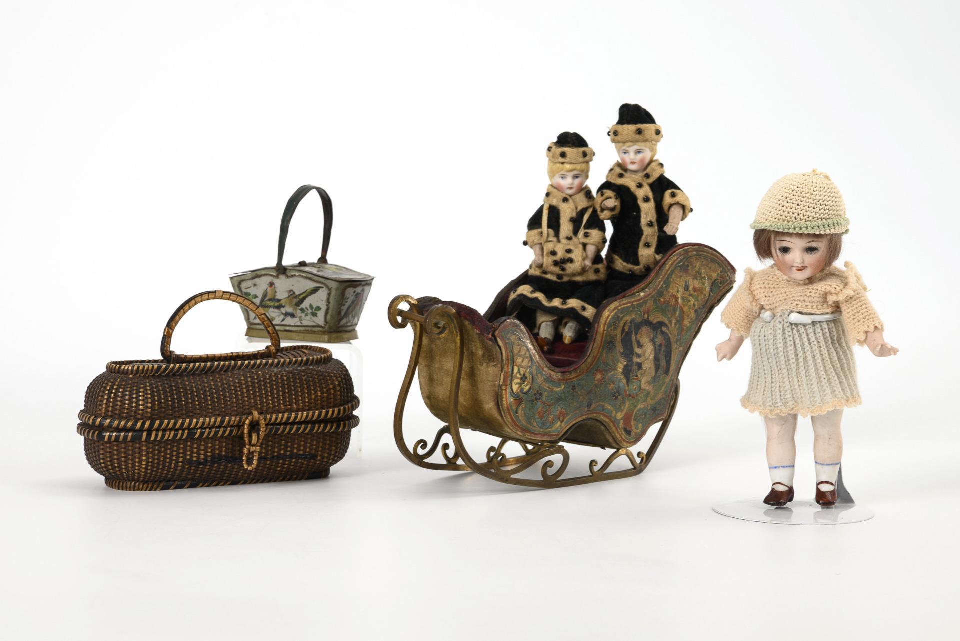 Sie befinden sich hier: Startseite Kategorien Spielzeug Konvolut mit Schlitten, 3 Püppchen und 2 Körben für die Puppenstube