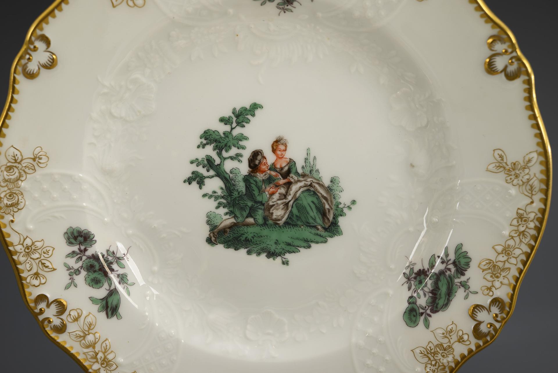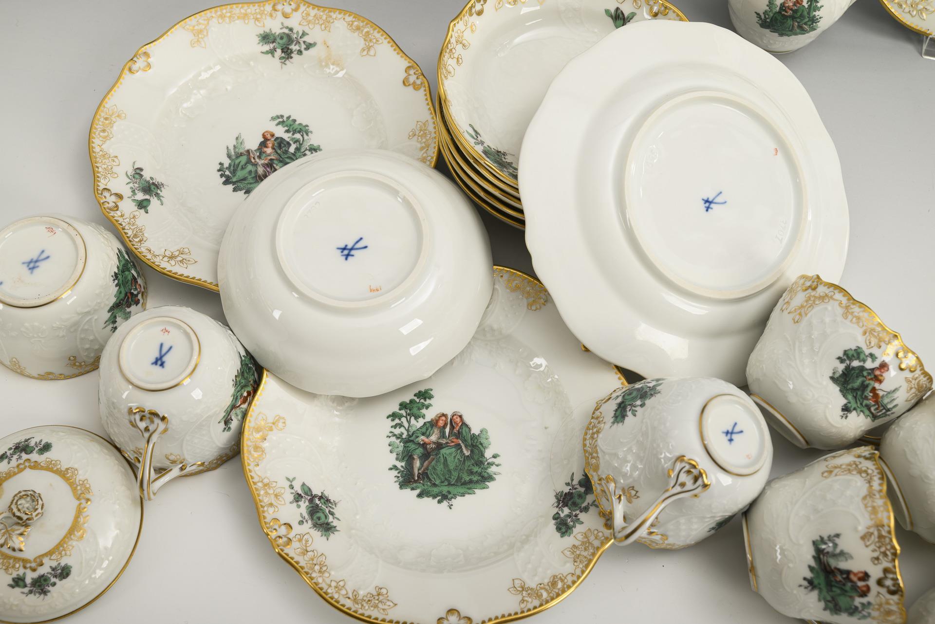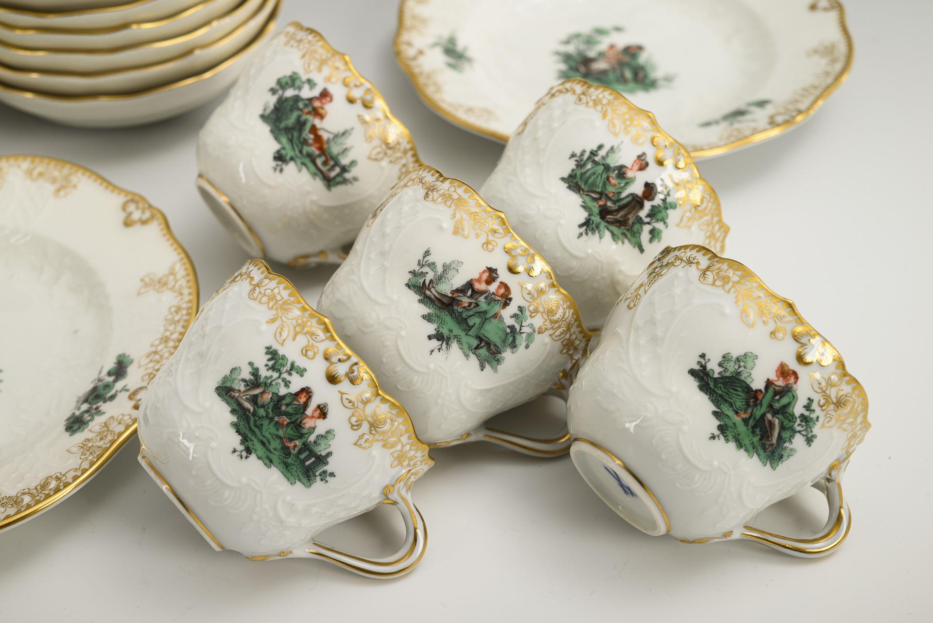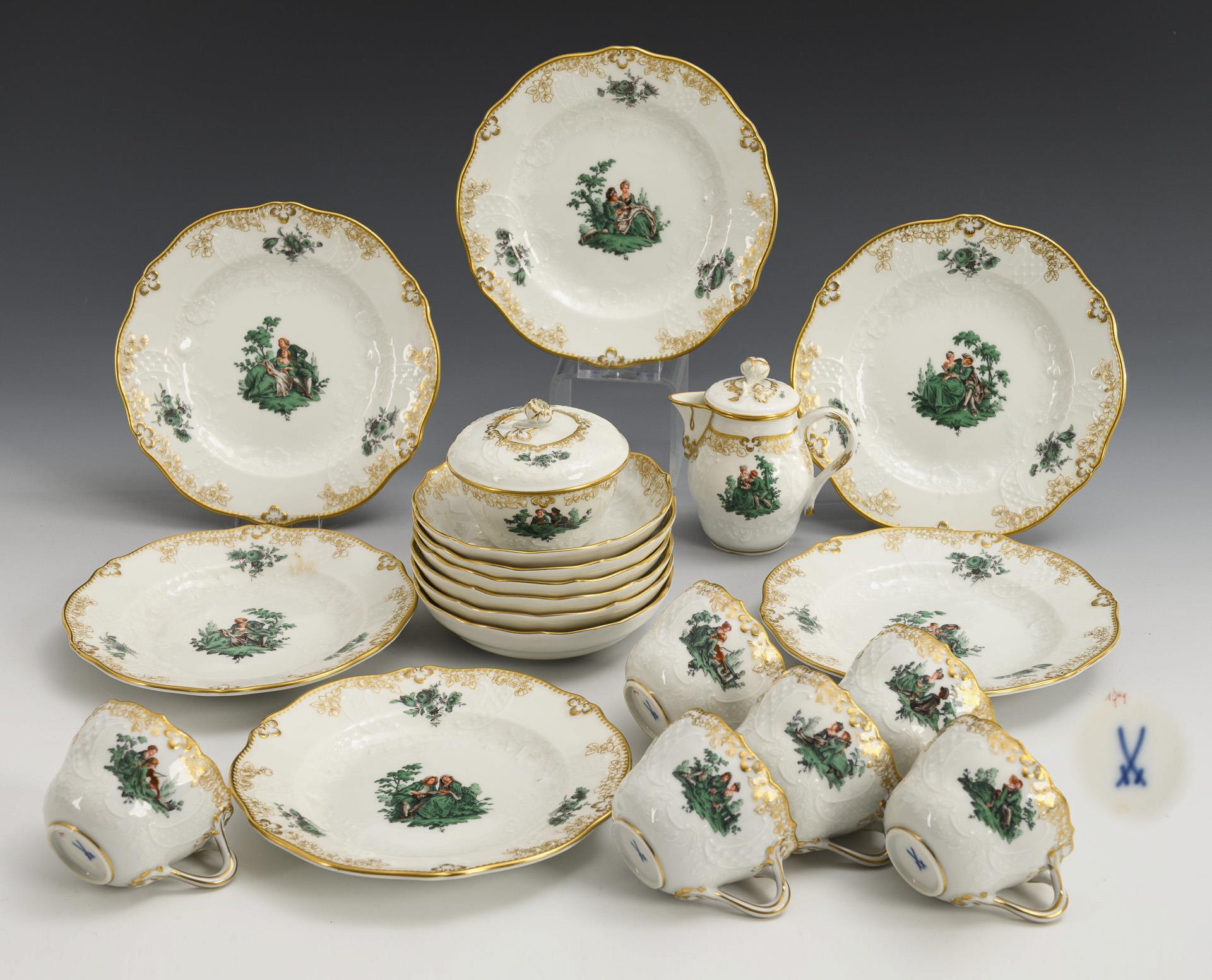 20 Teile eines Mokkaservice mit Watteau-Malerei. Meissen.