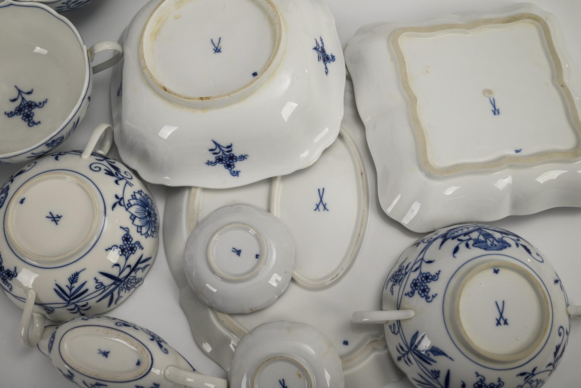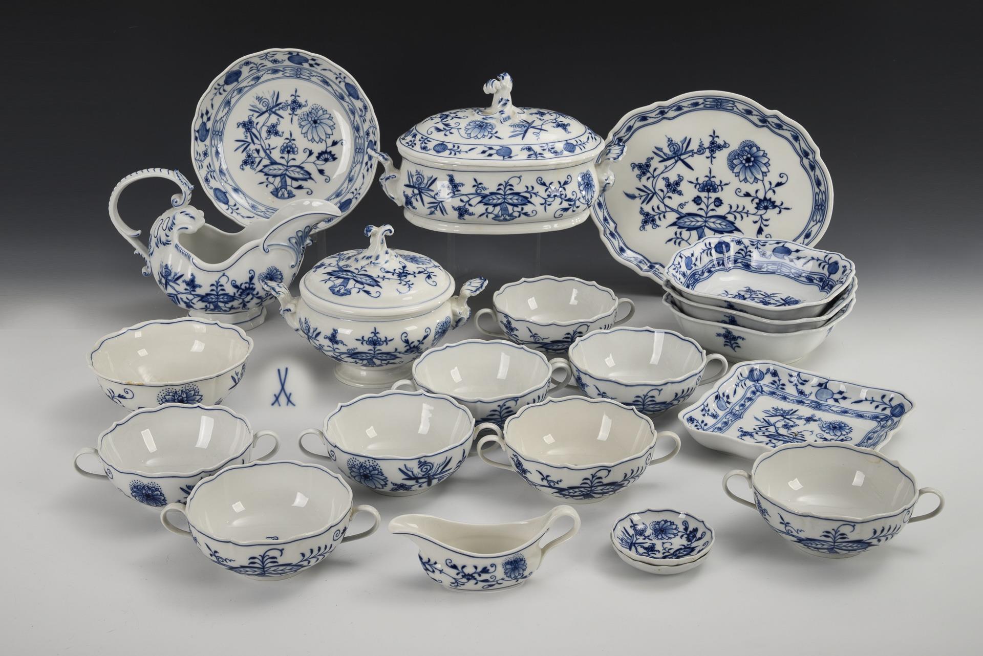 21 Teile eines Zwiebelmuster-Speiseservice. Meissen.