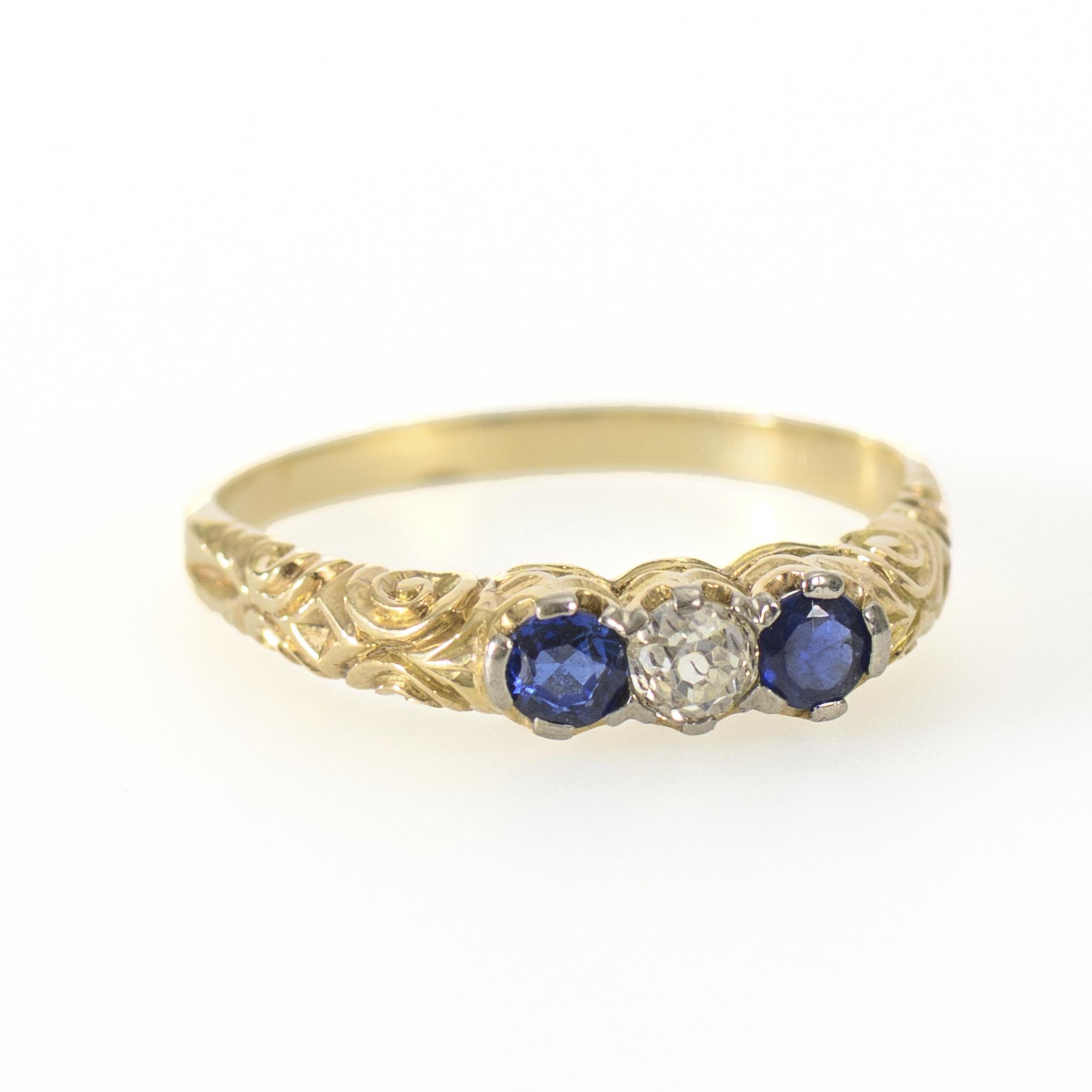 Sie befinden sich hier: Startseite Kategorien Schmuck Historischer Allianzring mit Altschliff-Brillant und blauen Farbsteinen