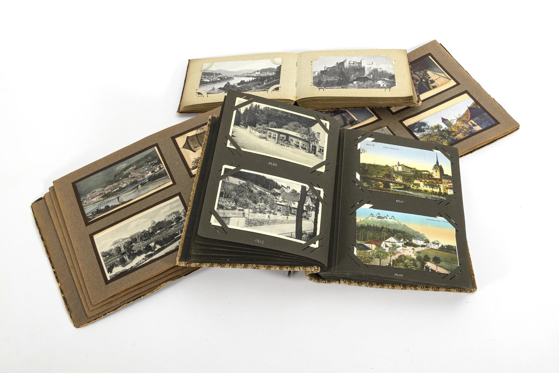 3 Postkartenalben mit zusammen ca. 350 Ansichtskarten