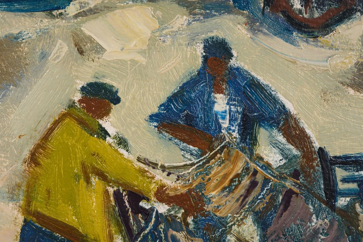 Die Fischer bei der Arbeit am Strand.