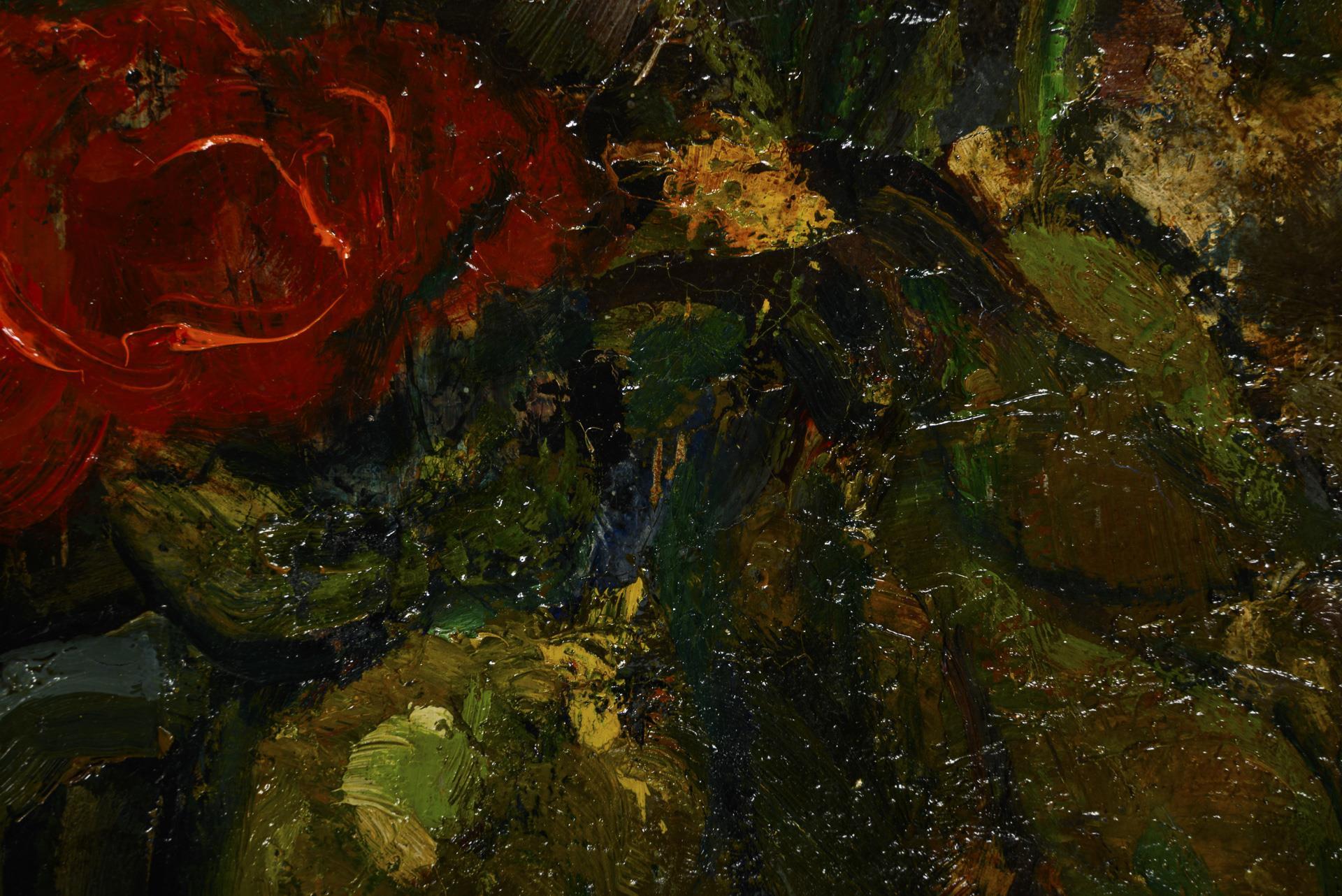 Modernes Stillleben mit verschieden farbigen Rosen.