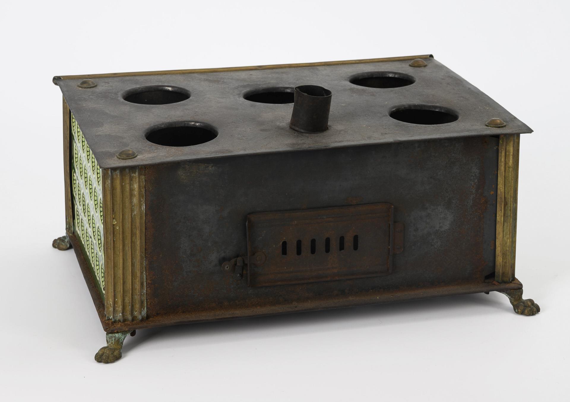 Literatur : Ähnlicher Herd abgebildet in: Sabine Reinelt: Puppenküche und Puppenherd in drei Jahrhunderten, S. 105 ODER A. und B. Wagner: Puppenküchen, S. 57, dort ohne Herstellerangabe.