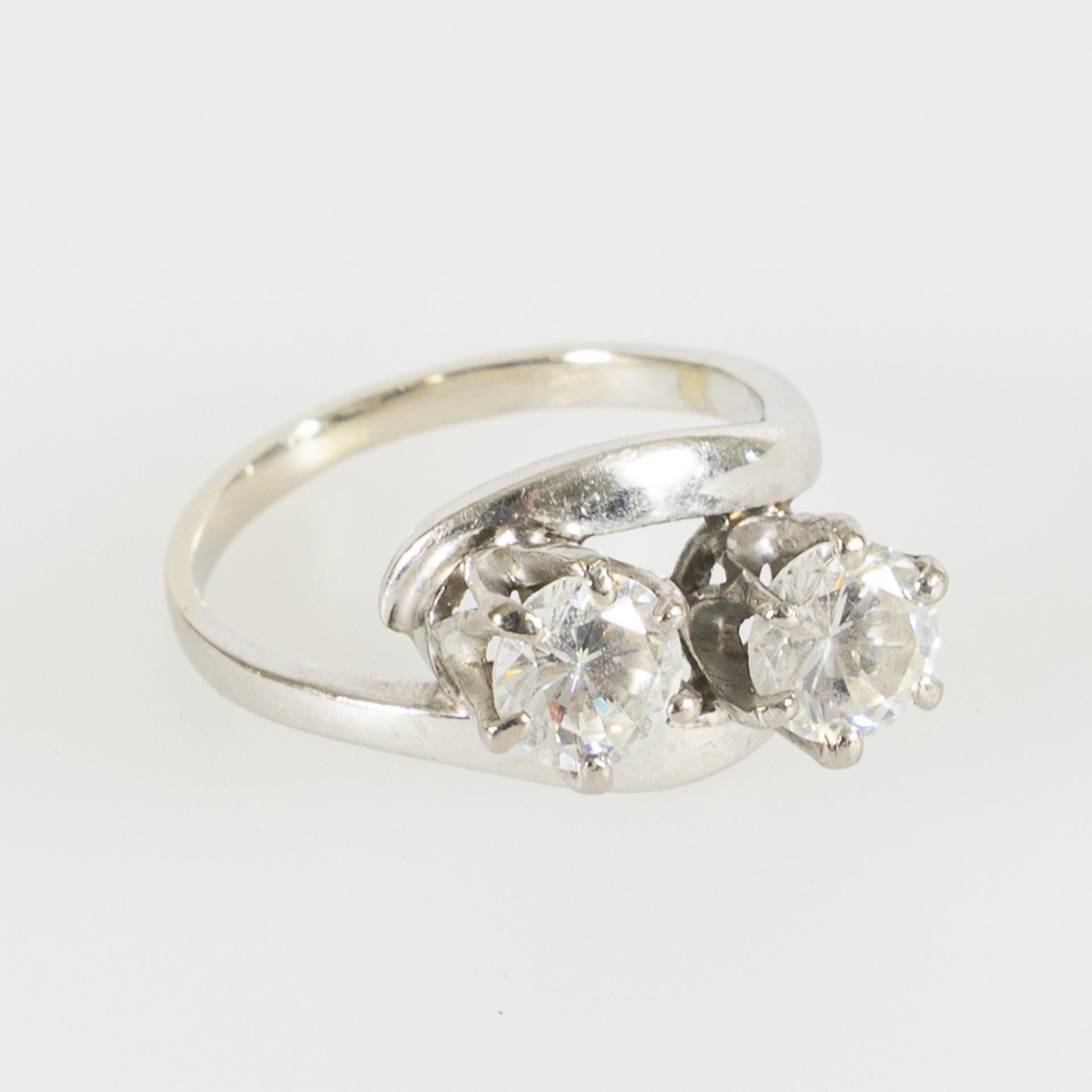 Sie befinden sich hier: Startseite Kategorien Schmuck Moderner Toi-et-Moi-Ring mit zwei brillantähnlichen Steinen, wohl Zirkonen