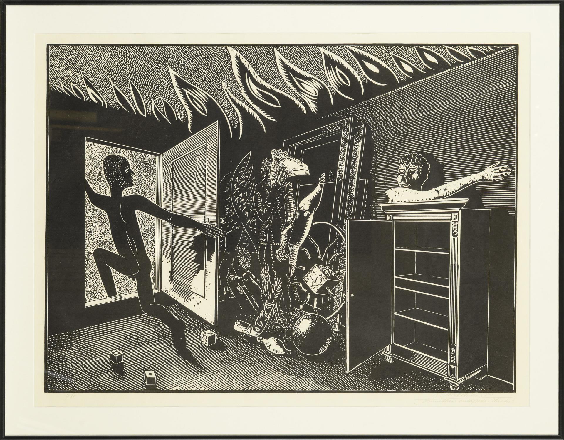 Linolschnitt. Rechts unten Bleistiftsignatur und betitetelt. (19)81.