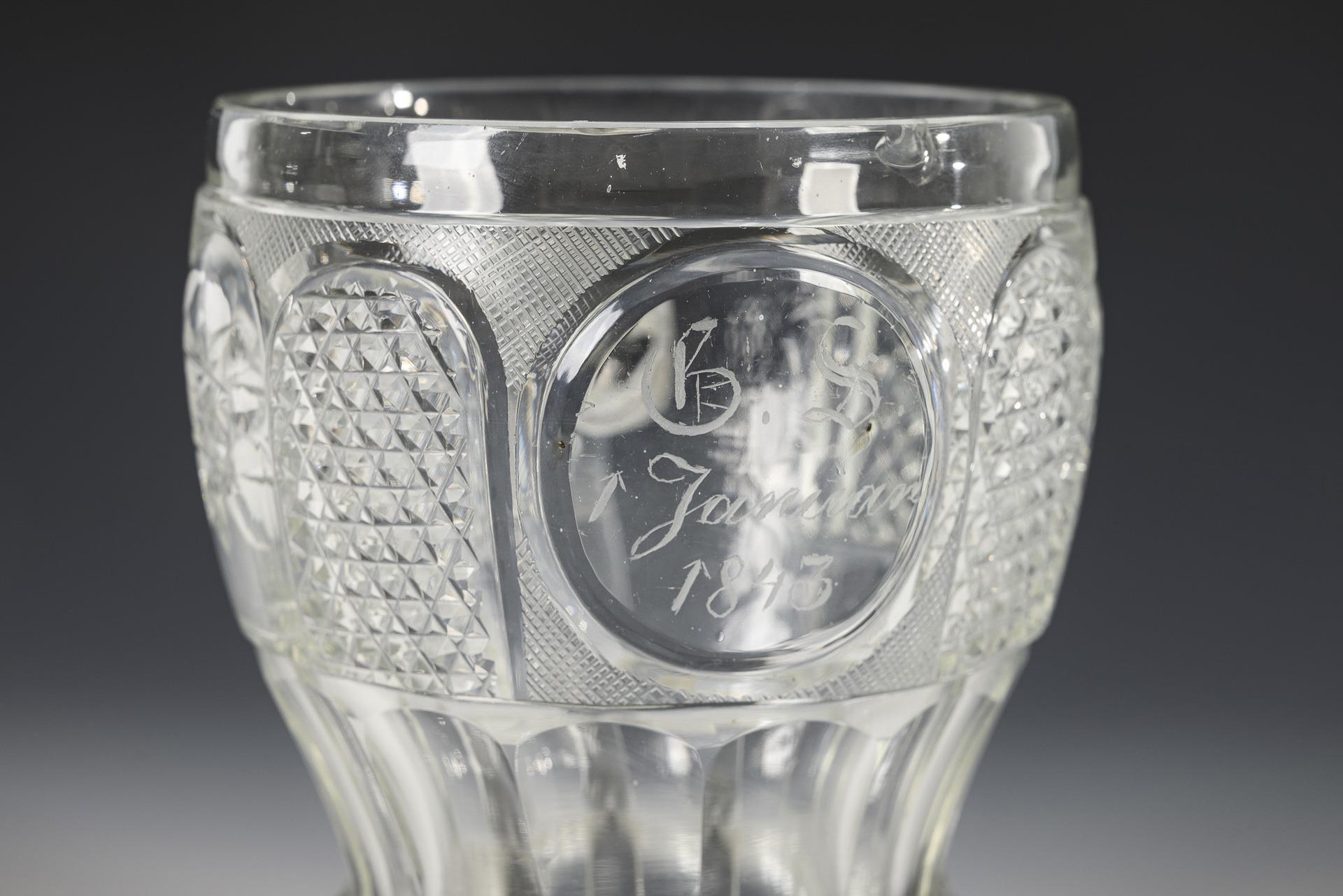 Biedermeier-Deckelkrug mit Schliffdekor.