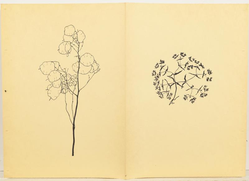 Mappe in Einzelblättern, 3 kleine und eine große Grafik. Mappe "Sechs Pflanzenzeichnungen - Lithographien nach Originalen", Reiher Verlag Weimar, 1922, Bindung aufgelöst, aber wohl vollständig, 36 x 25 cm. / Großes Blatt mit Schneelandschaft, eingezäunter Garten, Radierung, rechts unten Bleistiftsignatur, nummeriert 47/150, etwas stockfleckig, Bild 30 x 41 cm. / 3 Landschaftsminiaturen, Radierungen,