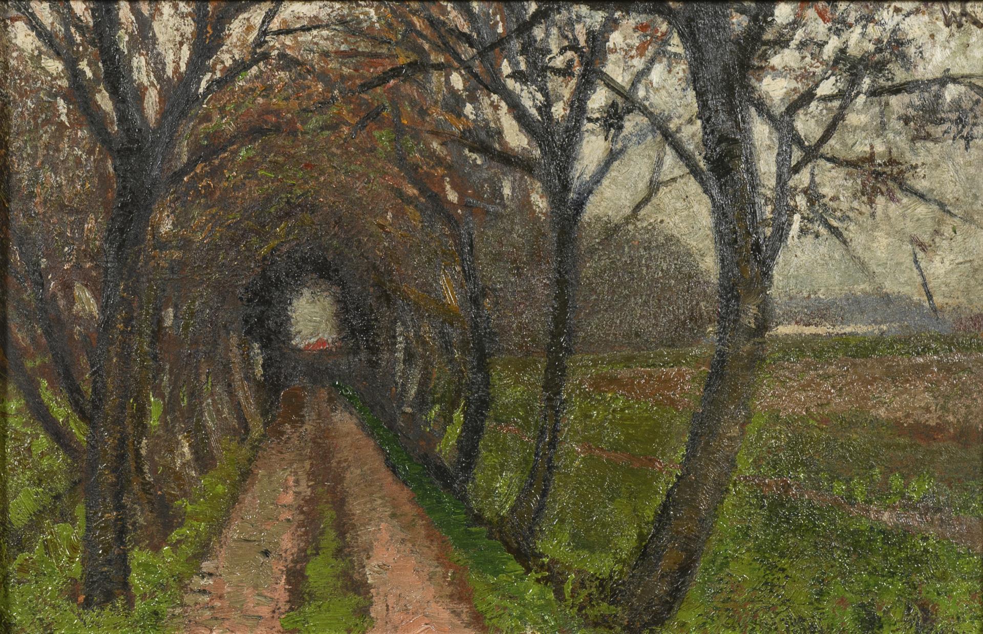Herbstliche Allee mit einen Tunnel bildenden Bäumen.