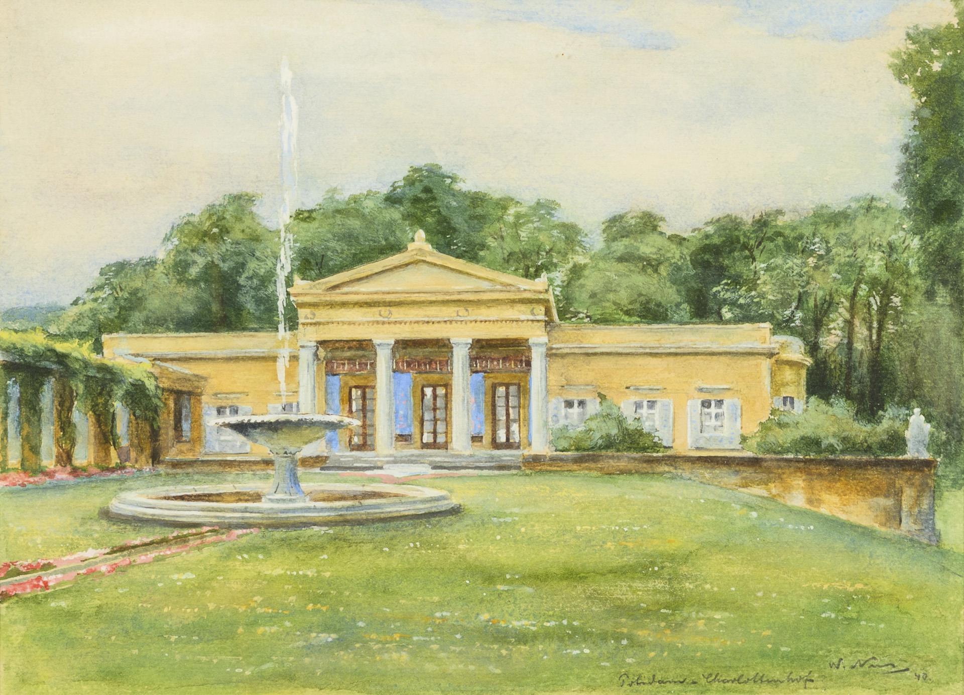 Undeutlich signiert: Blick auf Charlottenhof Potsdam