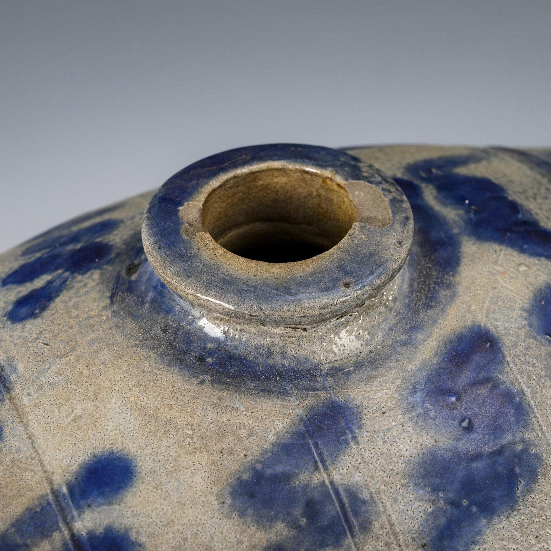 Graues, salzglasiertes Steinzeug mit Bemalung in Kobaltblau. H ca. 20 cm, L 28 cm. 1,7 kg.