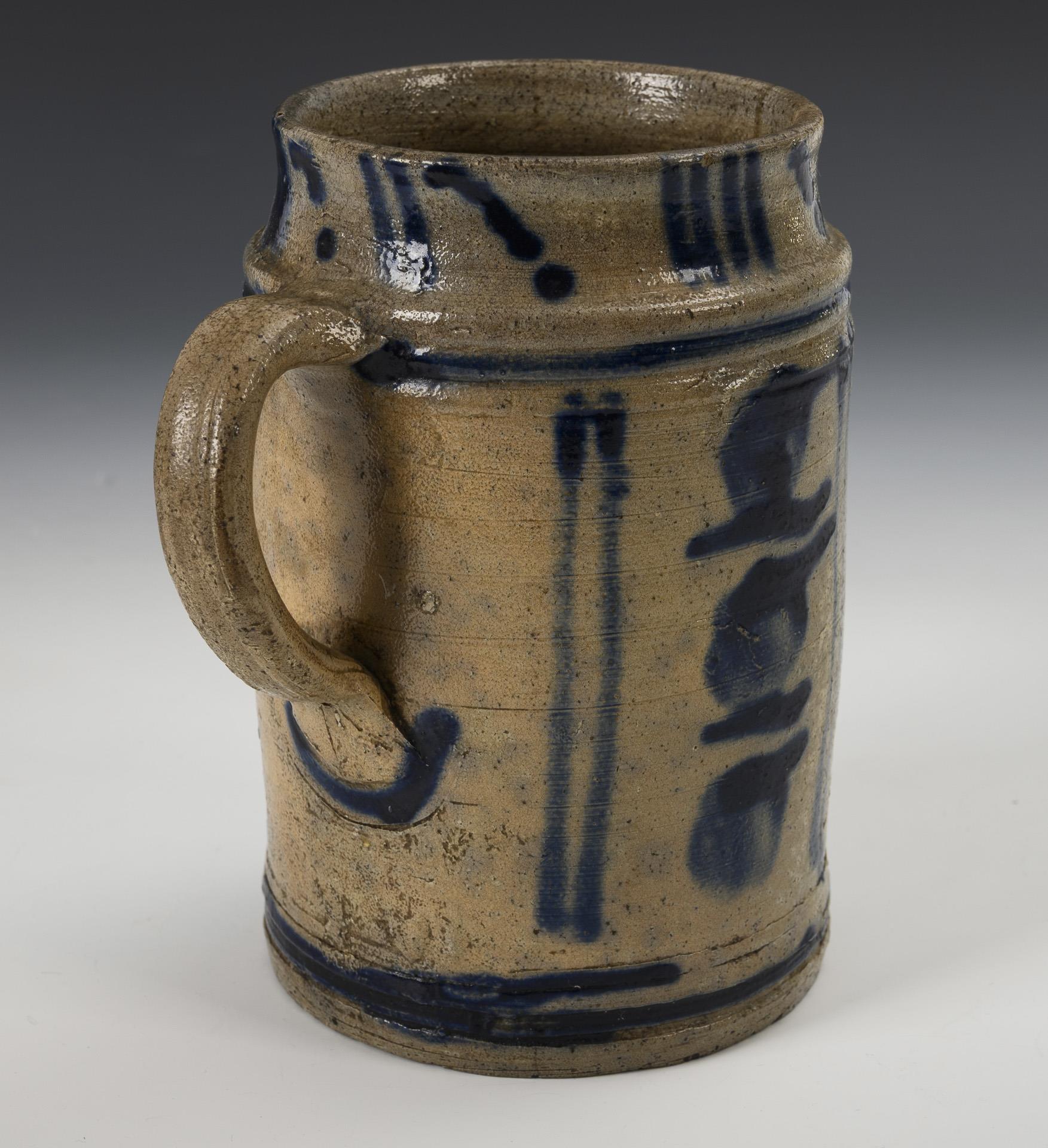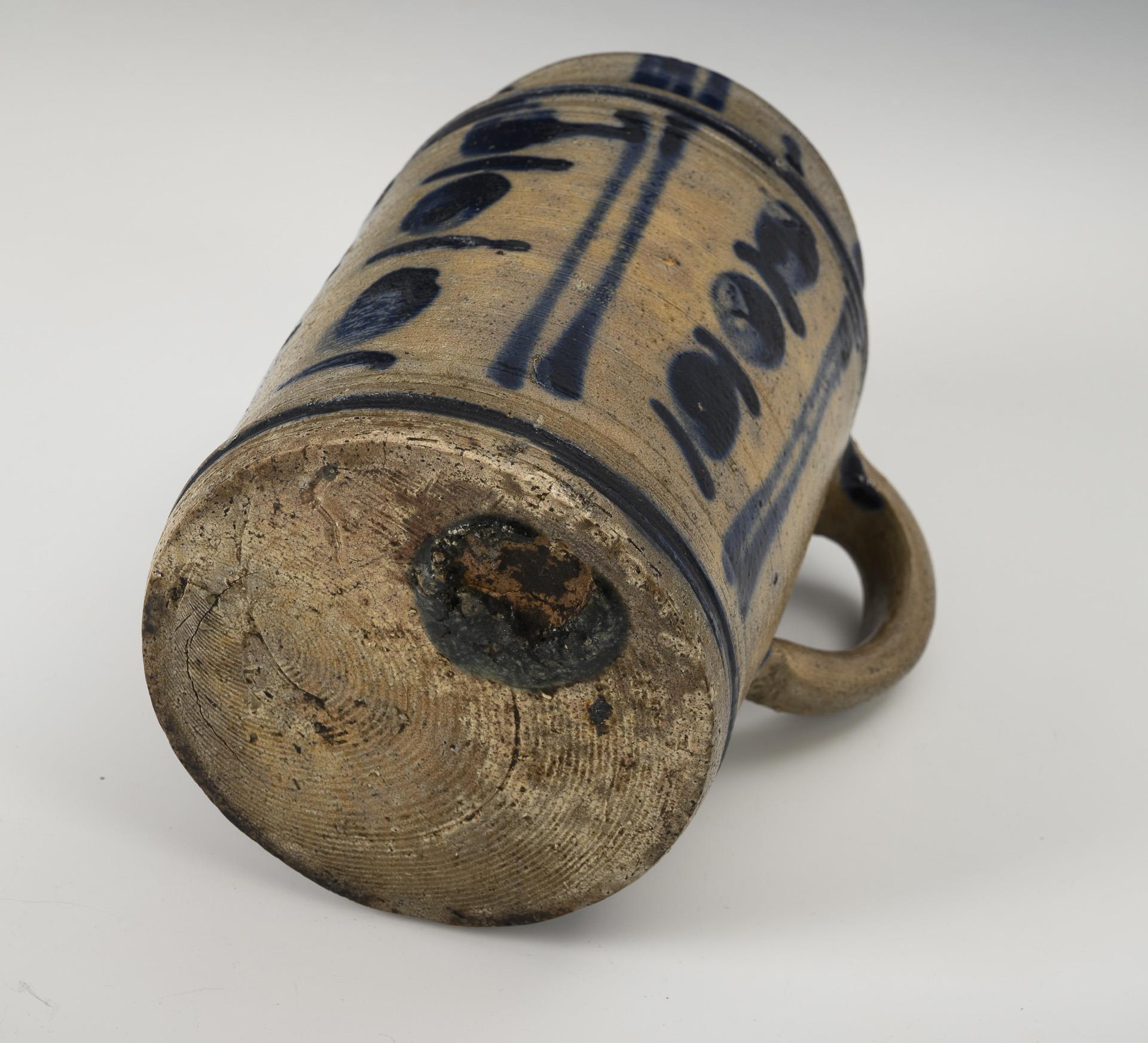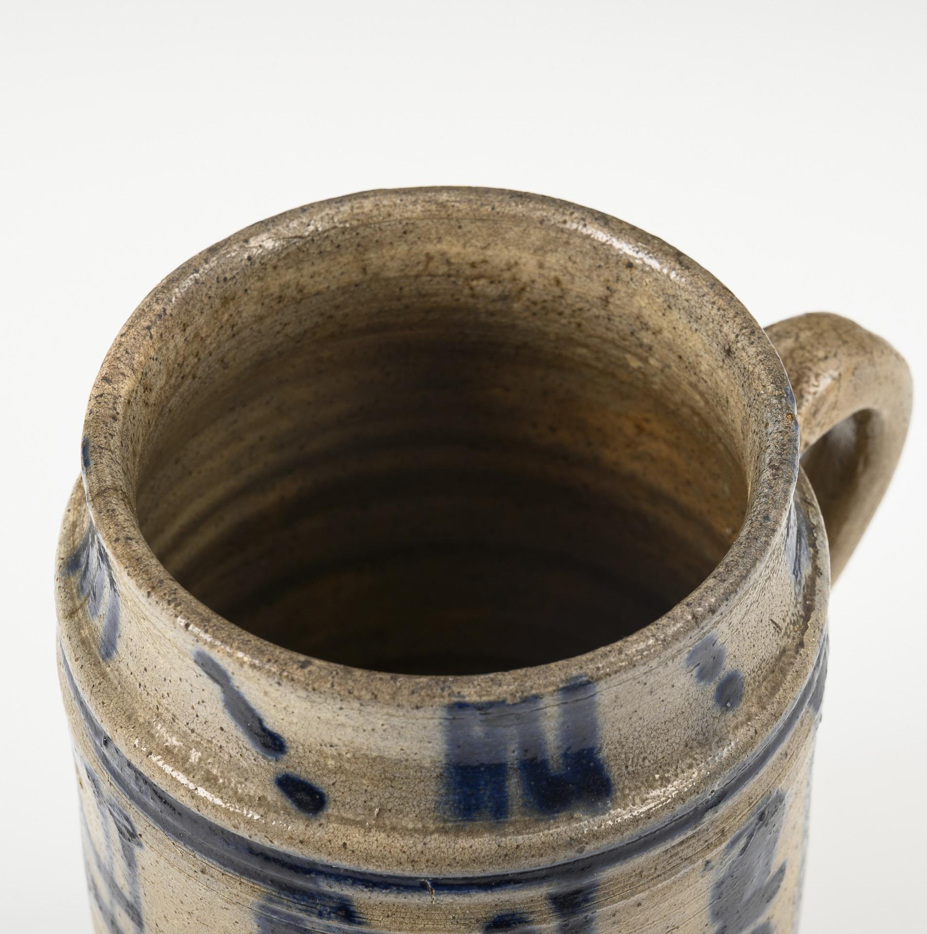 Graues, salzglasiertes Steinzeug mit Bemalung in Kobaltblau. H 18 cm. 877 g.
