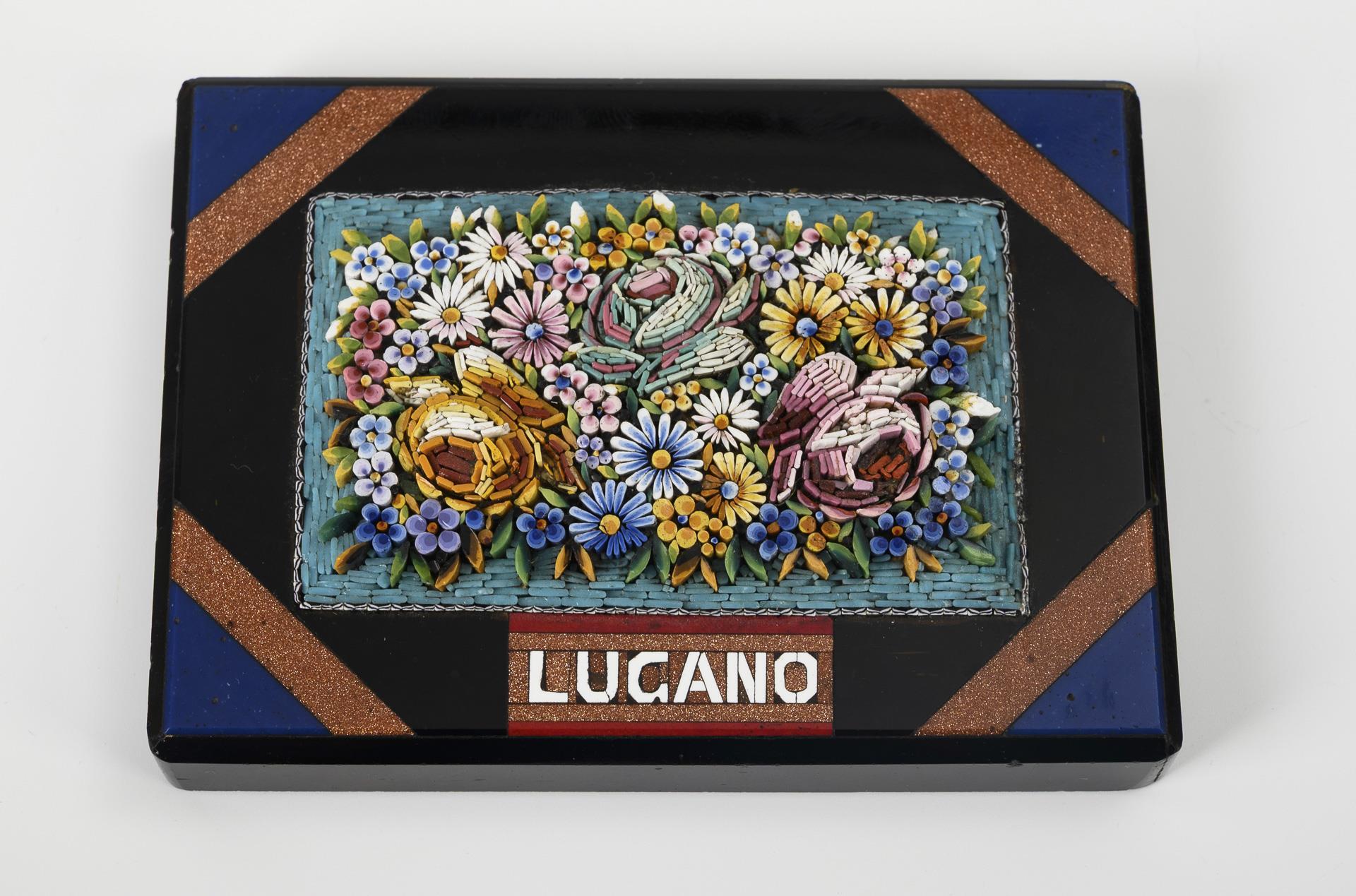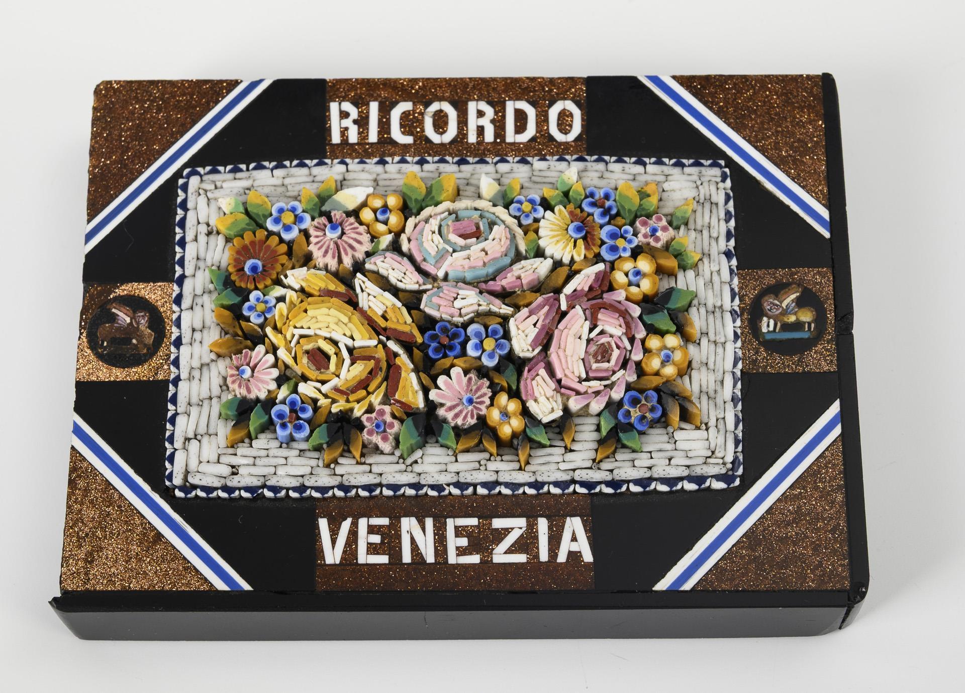 2 Mikromosaik-Souvenire: "Ricordo Venezia" und "Lugano".
