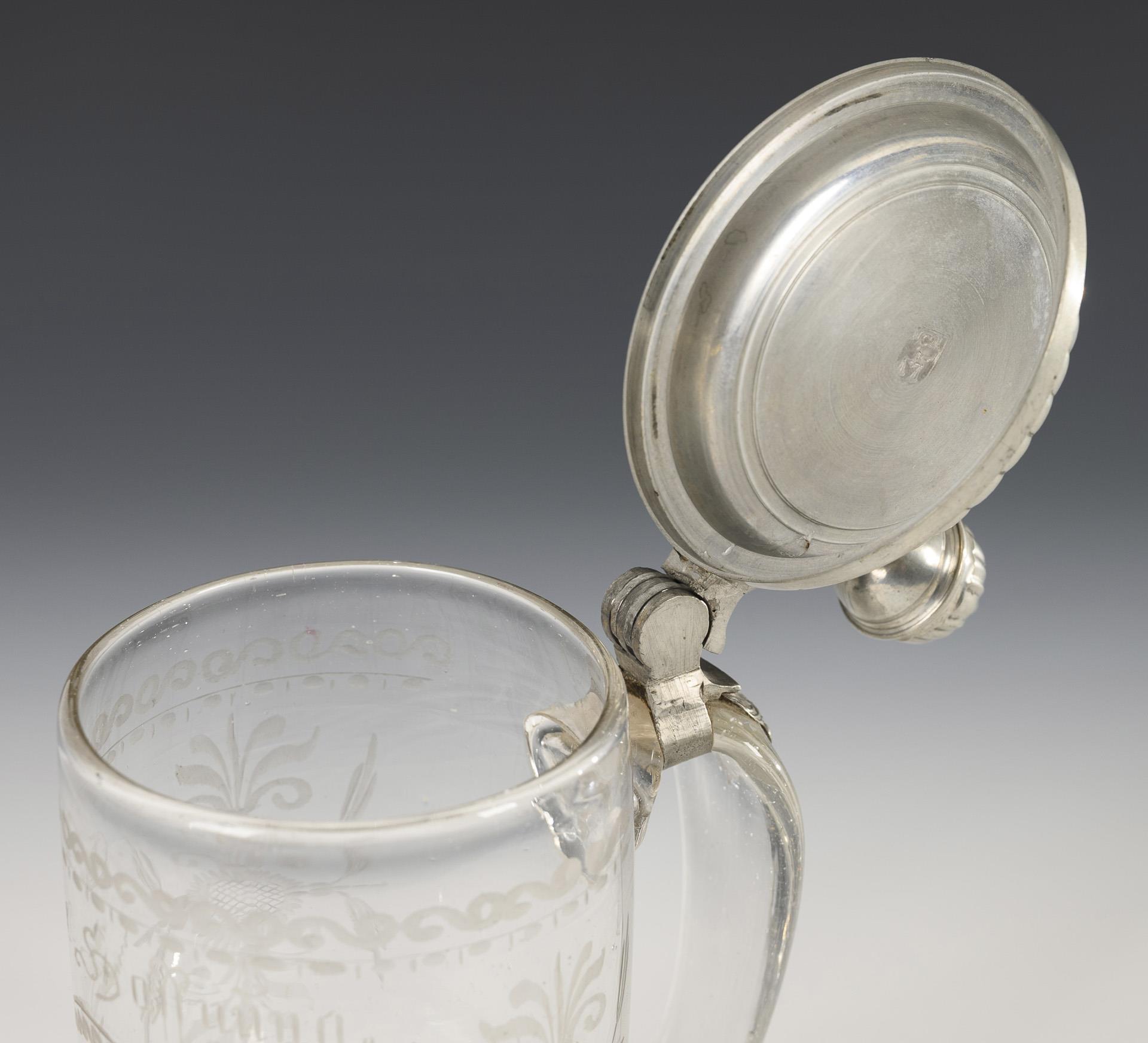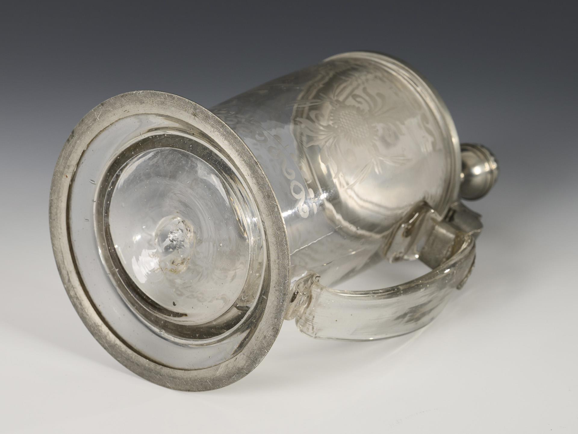 Farbloses Glas, Zinn. H 23,5 cm. 950 g.