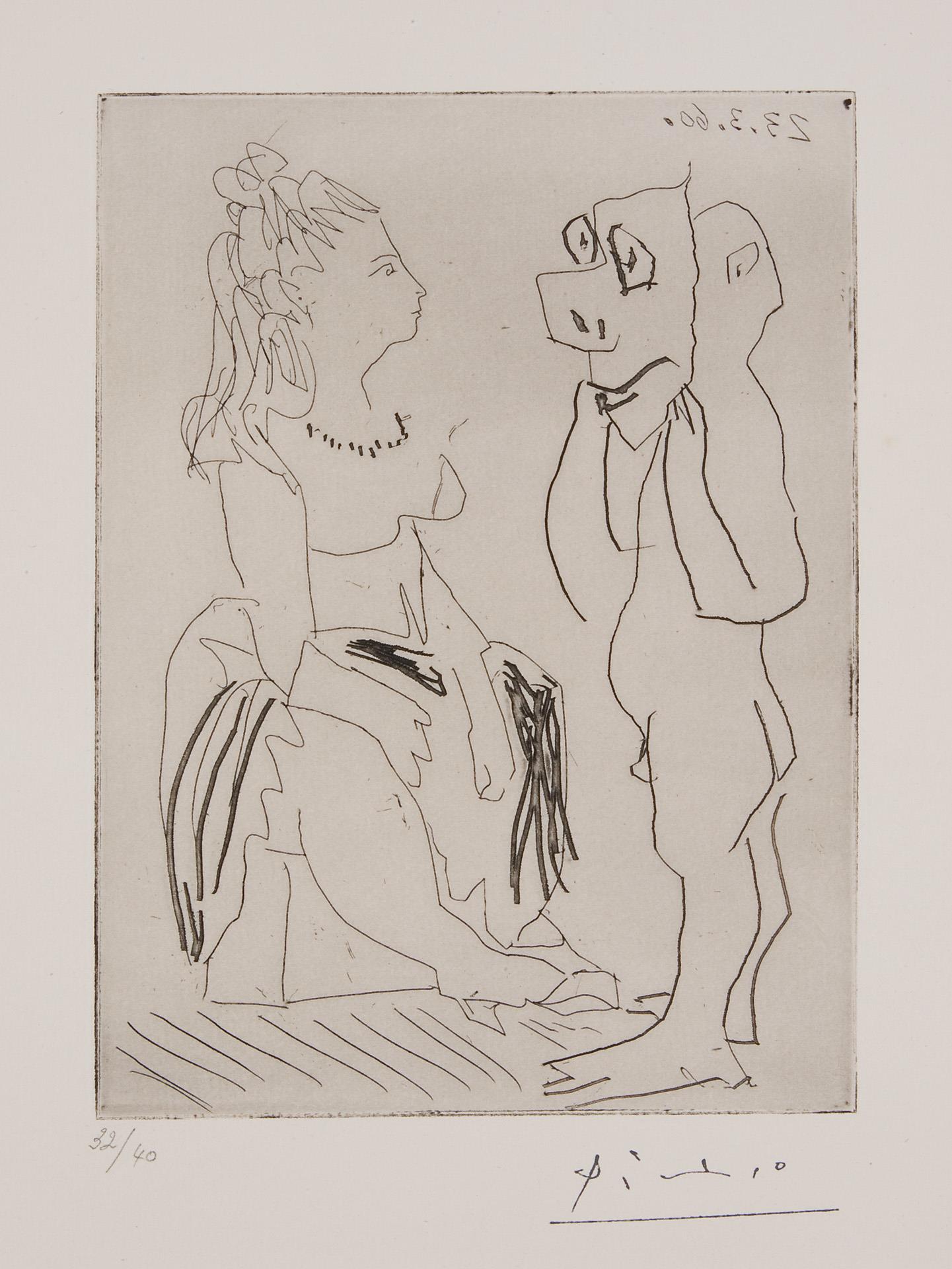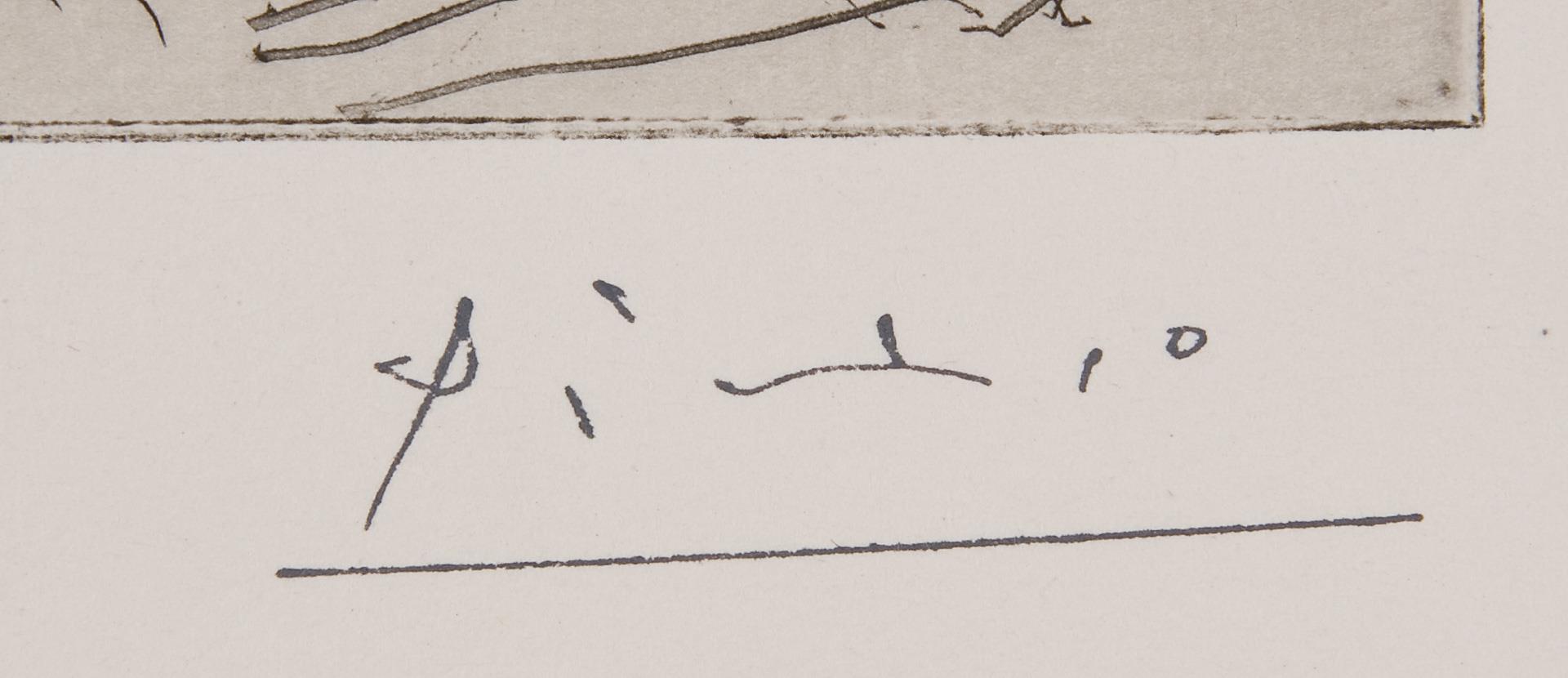 Picasso, eigentlich Pablo Ruiz y Picasso, Maler, Grafiker und Bildhauer, studierte in Barcelona und Madrid. Seit 1904 in Paris ansässig, gilt als der Inbegriff des modernen Künstlers, bediente sich verschiedener Stilrichtungen, einer der bedeutendsten Künstler des 20. Jahrhunderts * Partnerauktion BergmannAlle Lose mit einem Limit (Startpreis) von mind. 1.500€ werden mit der Art Loss Register Datenbank abgeglichen.