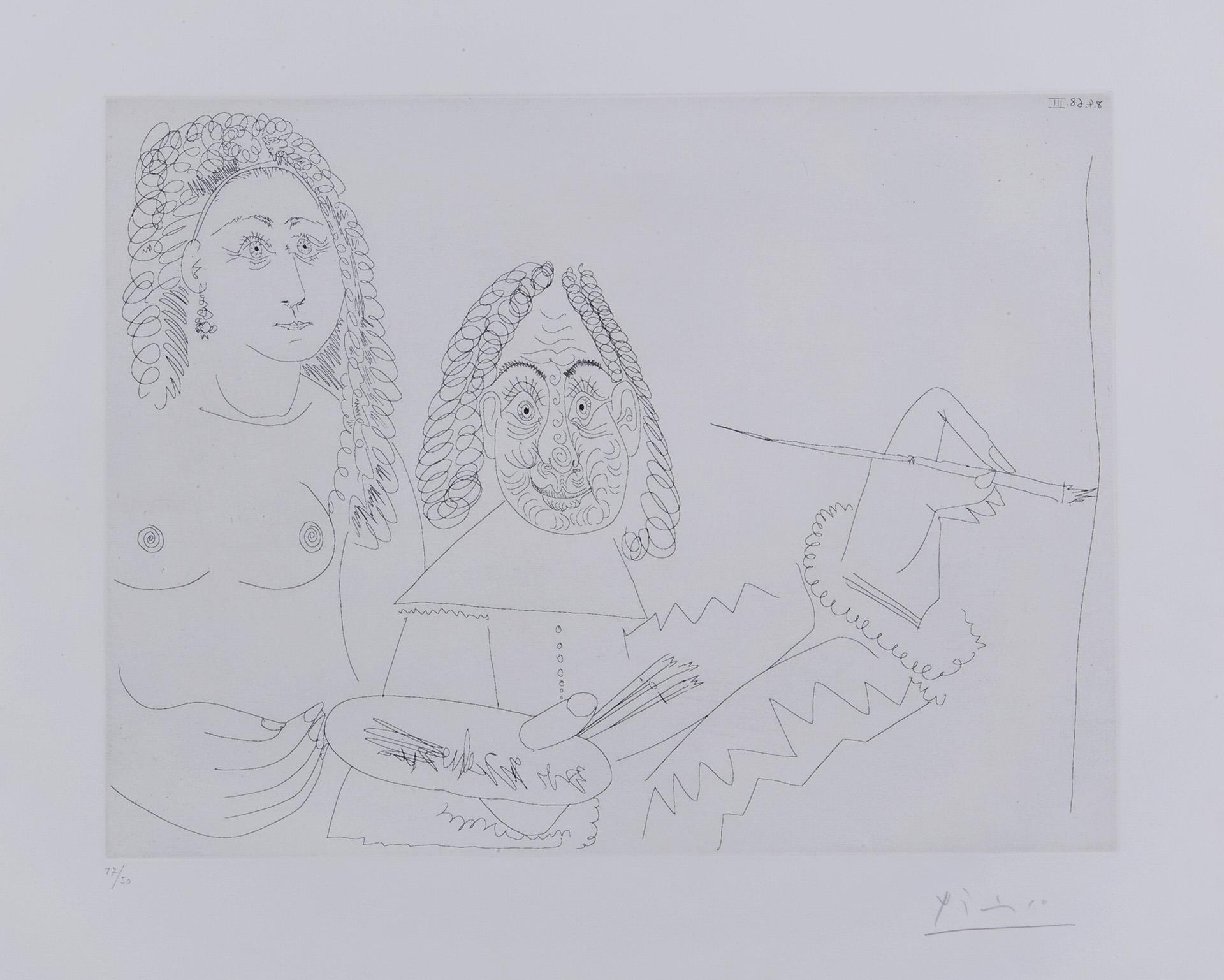Picasso, eigentlich Pablo Ruiz y Picasso, Maler, Grafiker und Bildhauer, studierte in Barcelona und Madrid. Seit 1904 in Paris ansässig, gilt als der Inbegriff des modernen Künstlers, bediente sich verschiedener Stilrichtungen, einer der bedeutendsten Künstler des 20. Jahrhunderts * Partnerauktion Bergmann. Alle Lose mit einem Limit (Startpreis) von mind. 1.500€ werden mit der Art Loss Register Datenbank abgeglichen.