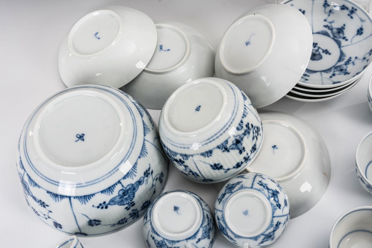 22 Teile. Gebrochen gerippte und glatte Wandung. Kaffeekanne (H 29 cm), Wasserkännchen (H 18 cm), Zuckerdose, Spülkumme, 9 Tassen (H 4,5 cm) und 9 Untertassen. Haarriss im Kannenhenkel und 3 Untertassen, minimale Bestoßung an 2 Tassenrändern und 1 Untertassenrand.