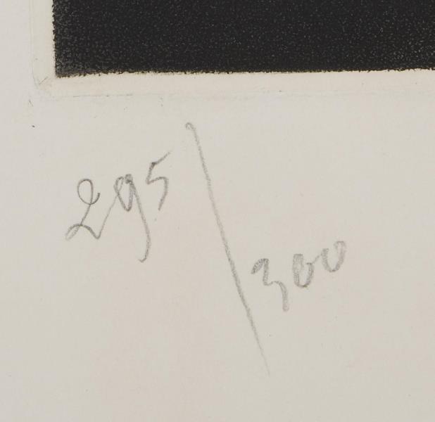 Nummeriertes Exemplar: 295/300, Prägestempel: Atelier (Aldo) Crommelynck Paris (1955 gegründet), Wasserzeichen, Passepartout.