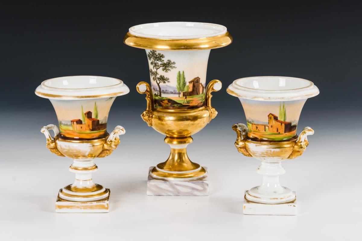 1 + 2 Kratervasen mit Landschafts- bzw. Figurenmalerei.