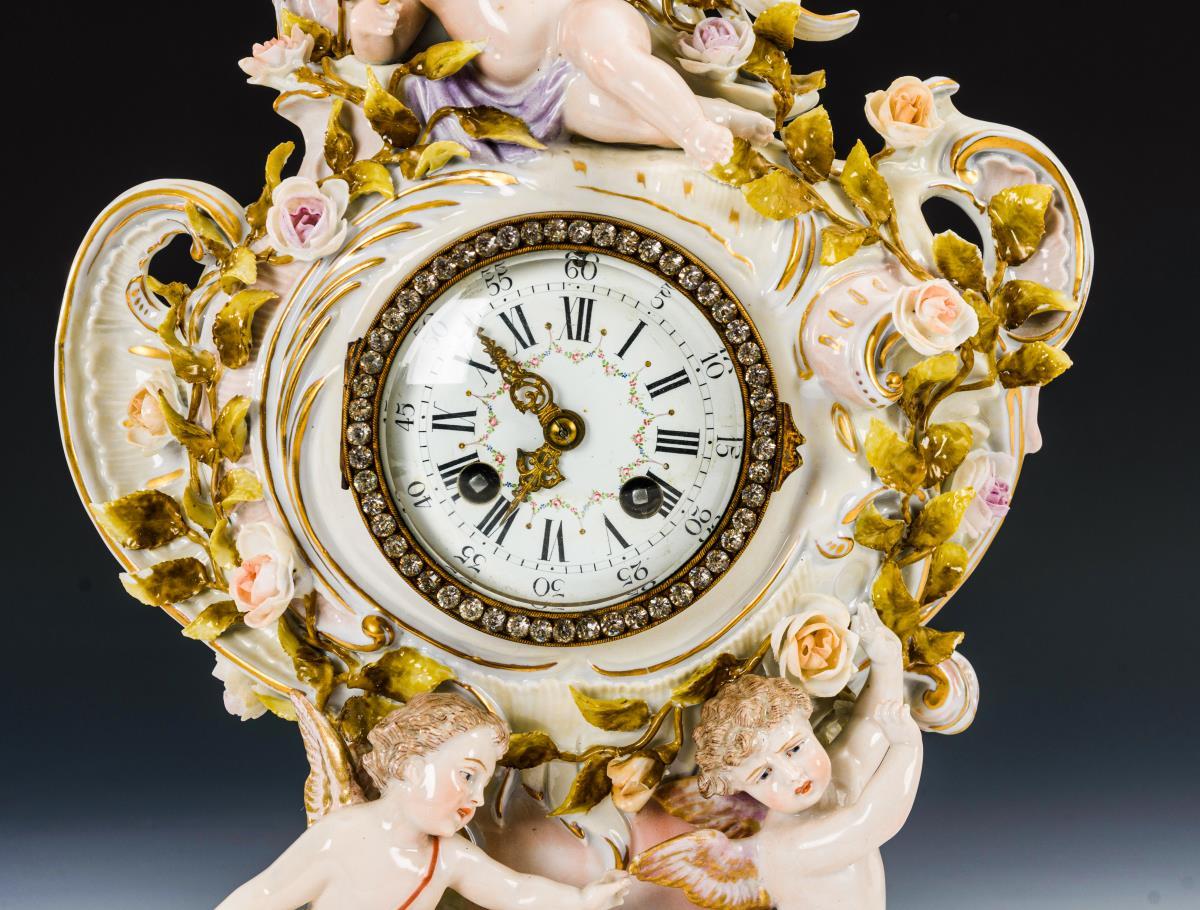 Porzellanuhr mit Putten. Schierholz.