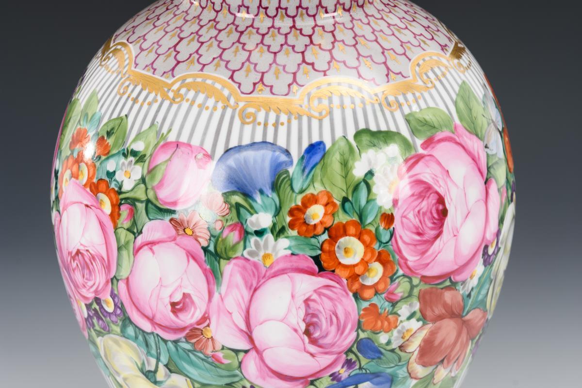 Deckelvase mit Blumenmalerei. Nymphenburg.