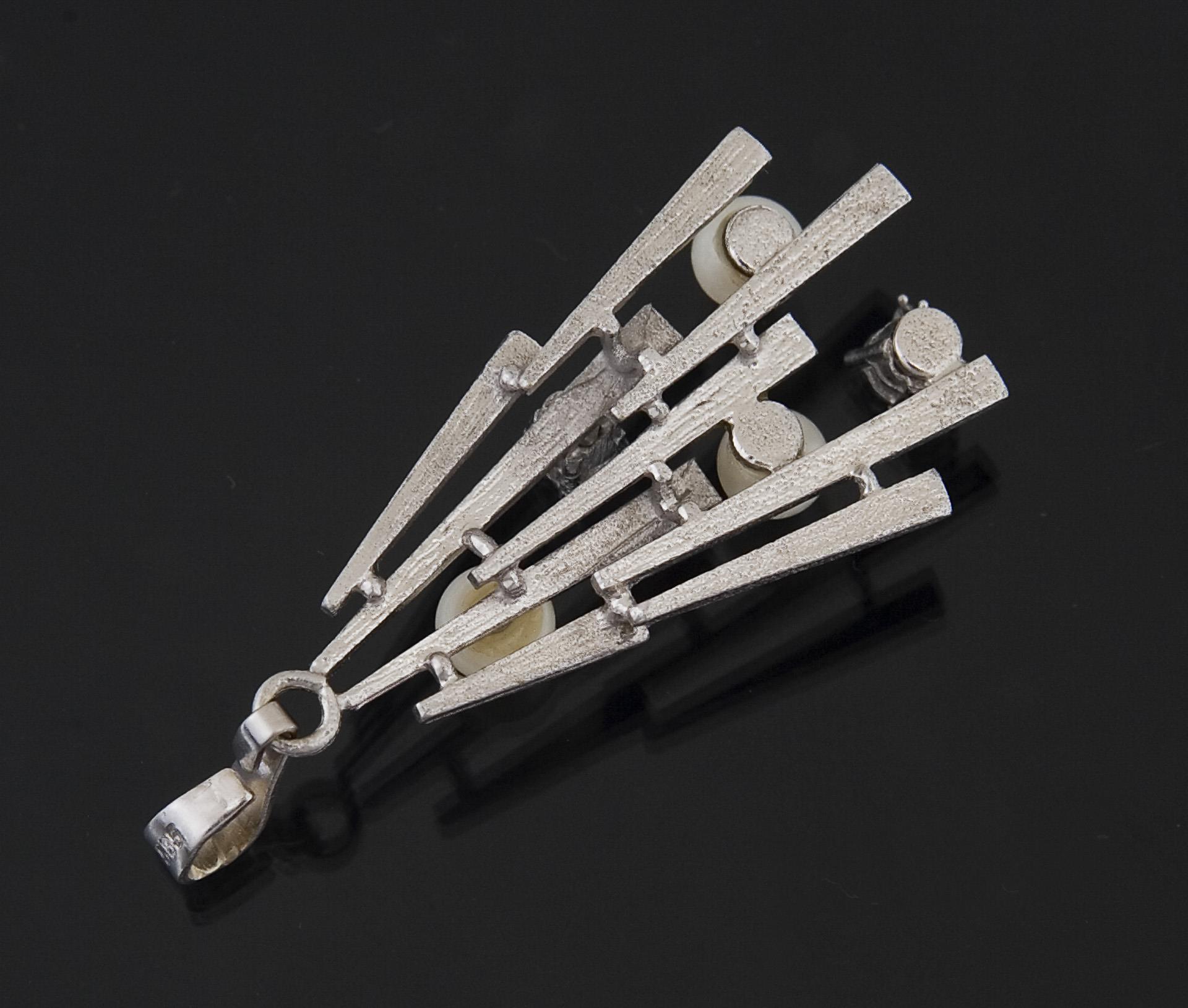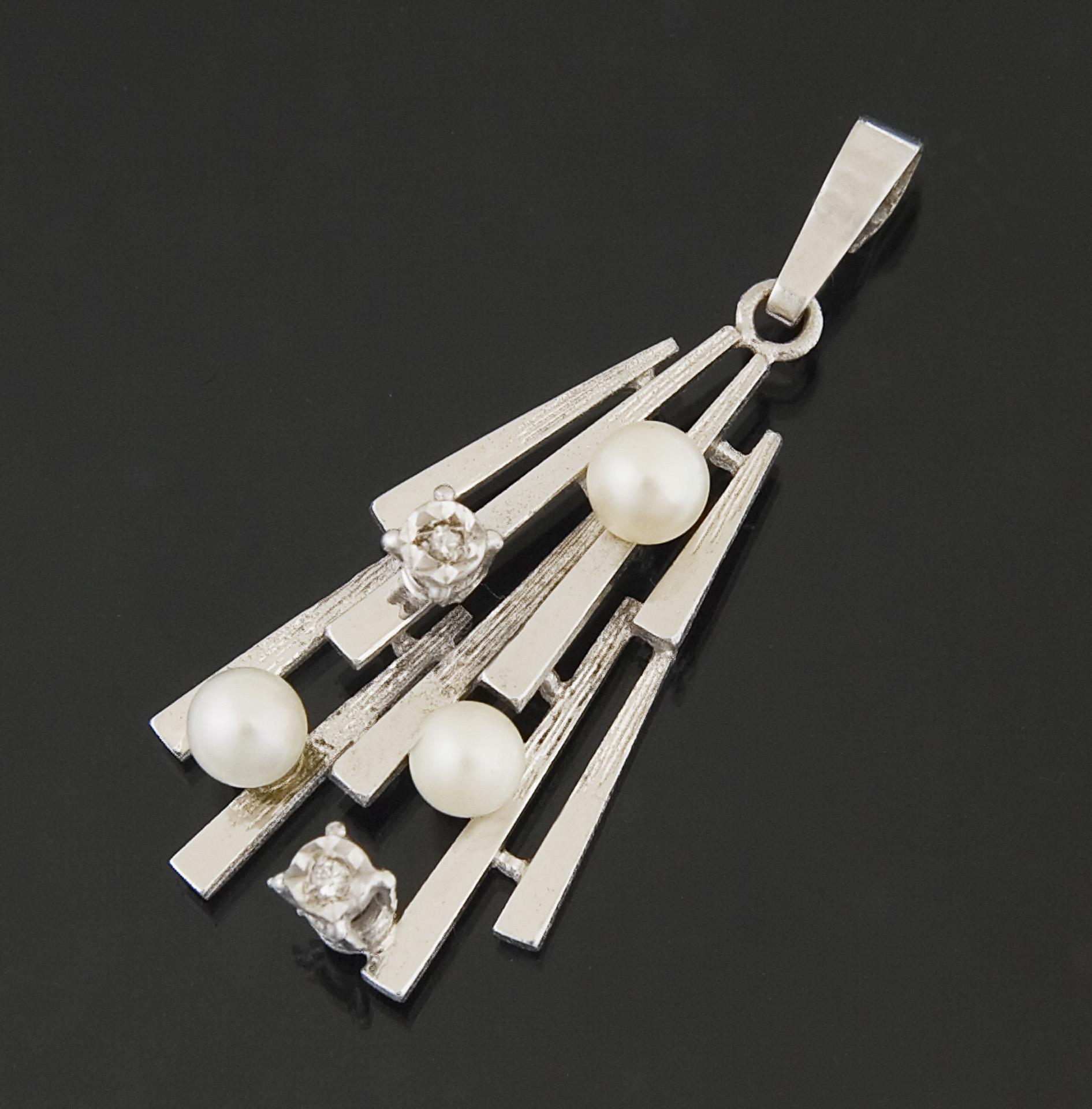 3 Perlchen, 2 kleine Diamanten, durchbrochen gearbeitet, bewegliche Öse, Punzen: Feingehalt.