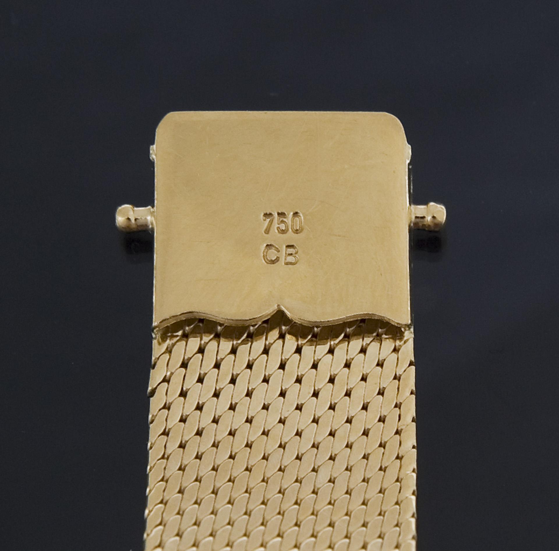 Feines Milanaiseband, Kastenschließe mit zwei Ösen, Punzen: Feingehalt, Juweliermarke CB.