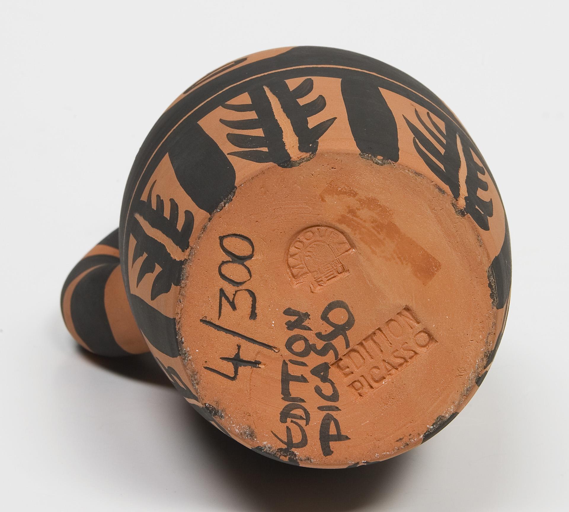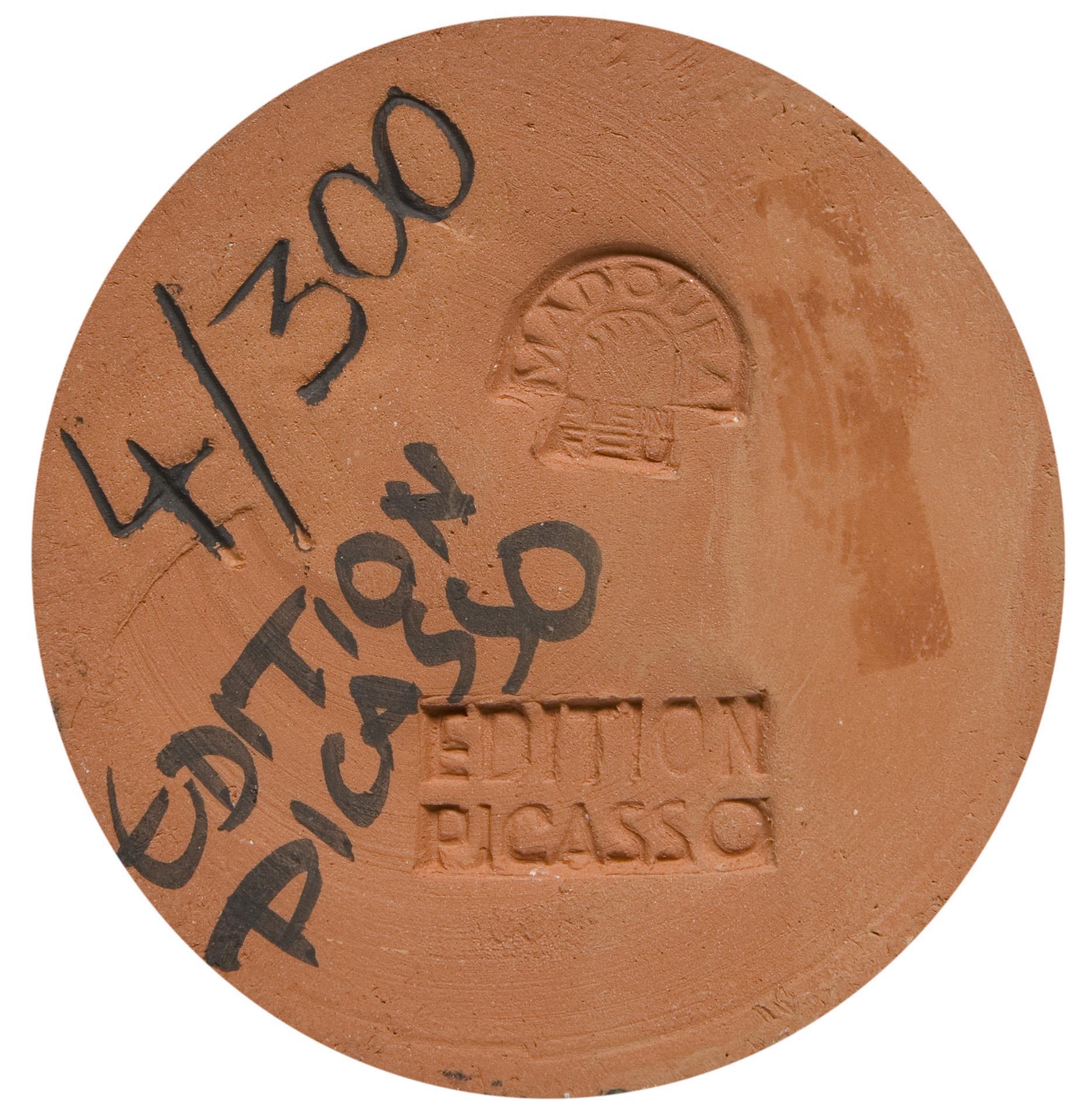 Keramik 1963, nummeriert: 4/300, umlaufend figürliches und ornamentales Dekor. Schwarzer Schriftzug Edition Picasso, Pressmarke: Edition Picasso, Madoura plein feu.