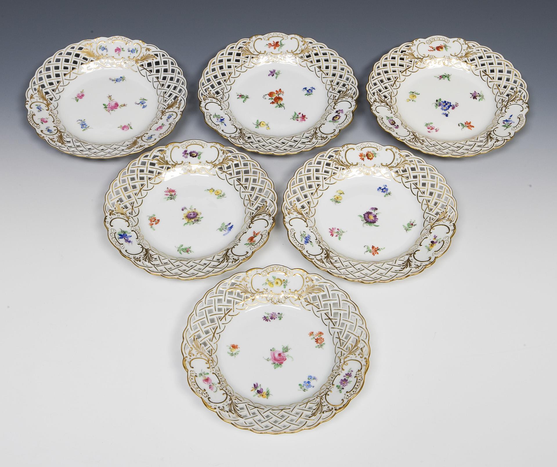 6er Satz kleine Durchbruchteller. Meissen.