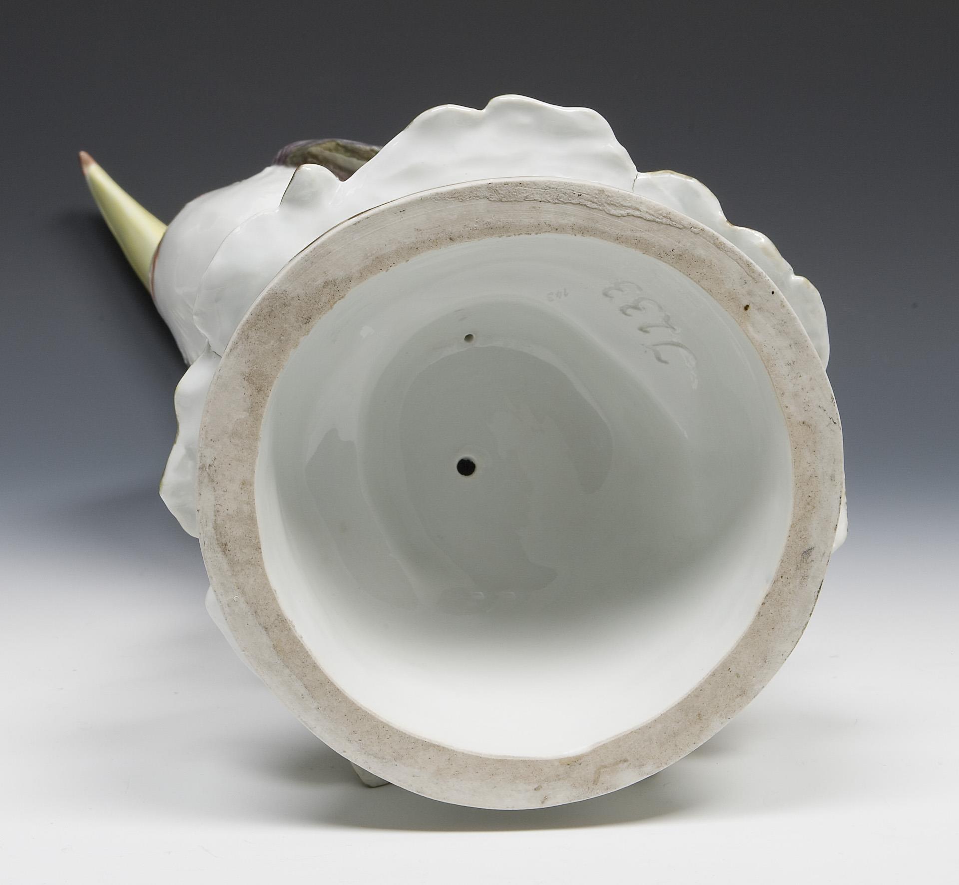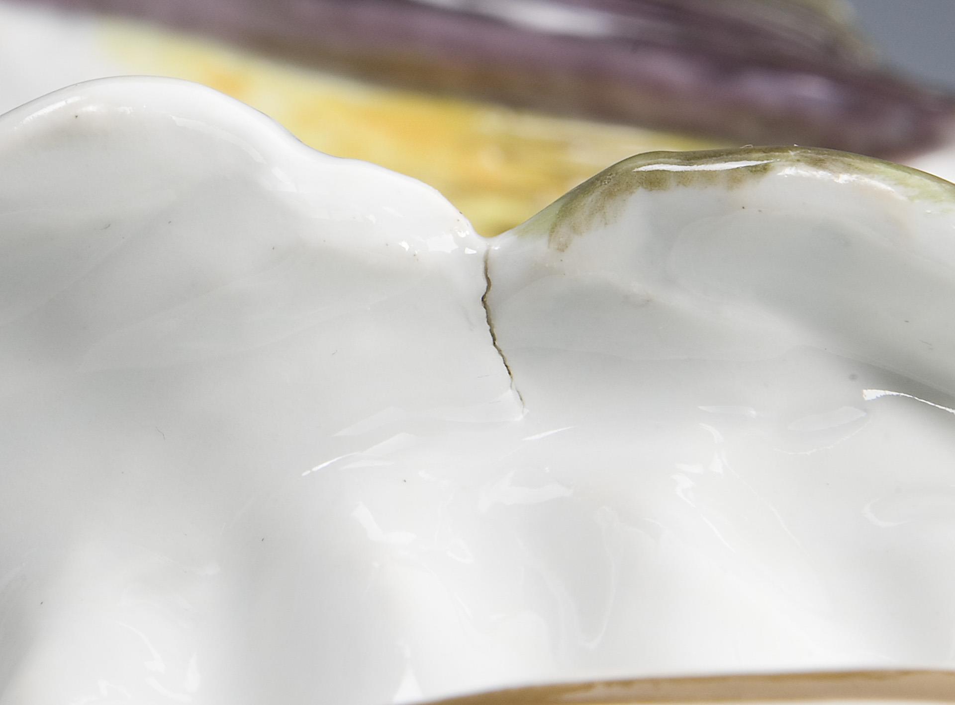 Modell-Jahr: 1924, naturalistisch bemalt, Ritzmarke, Pressmarke, Schwertermarke mit Punkt am Sockel, Künstler-Signet. Am Sockelrand von unten kleine Brandrisse.