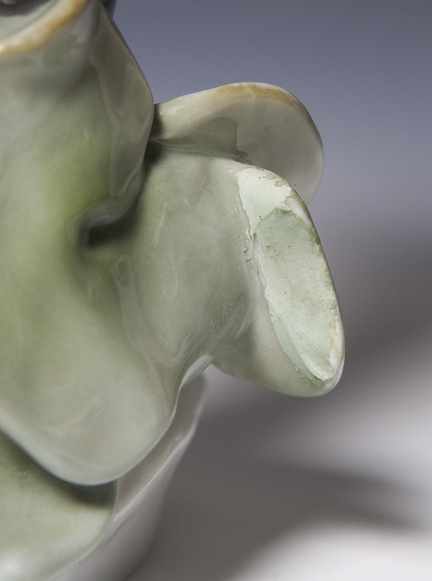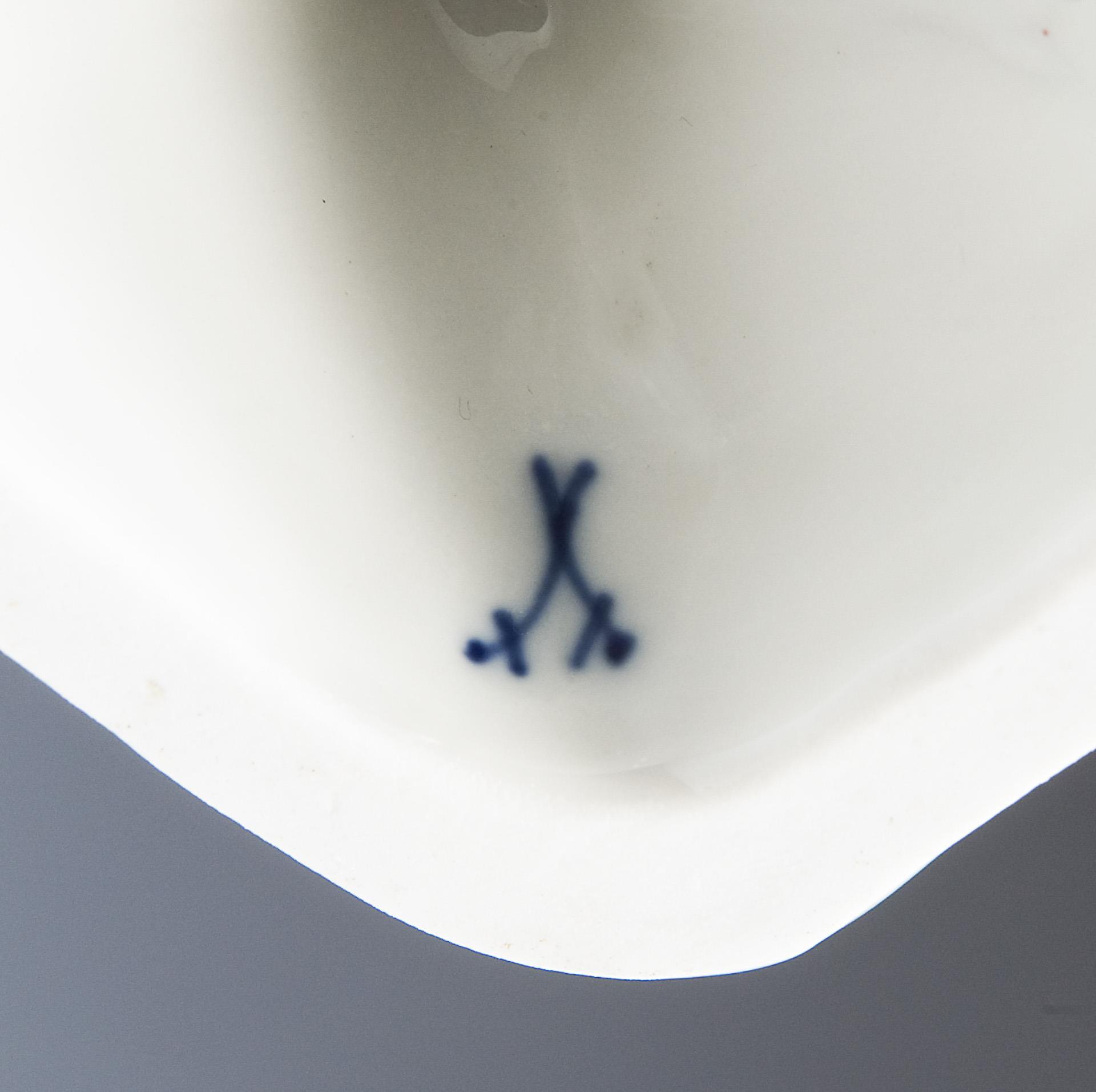 Modell-Jahr: 1906, naturalistisch bemalt, Pressmarke, Malermarke, Schwertermarke. Rückseitig ein Blatt bestoßen, Kehlsack partiell restauriert.