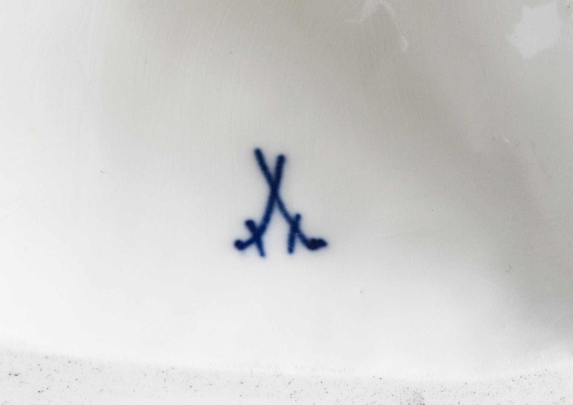 Modell-Jahr: 1907, naturalistisch bemalt, Ritzmarke, Pressmarke, Malermarke, Schwertermarke, Künstler-Signet. Hahnenkamm restauriert.
