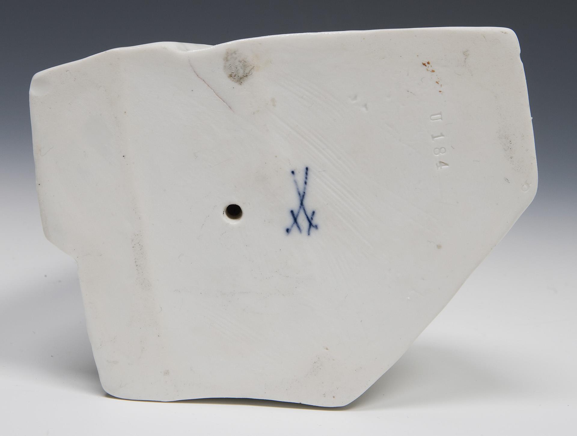 Modell-Jahr: 1904, naturalistisch bemalt, unglasierter Boden, Pressmarke, Schwertermarke. Sockelrand minimal bestoßen.