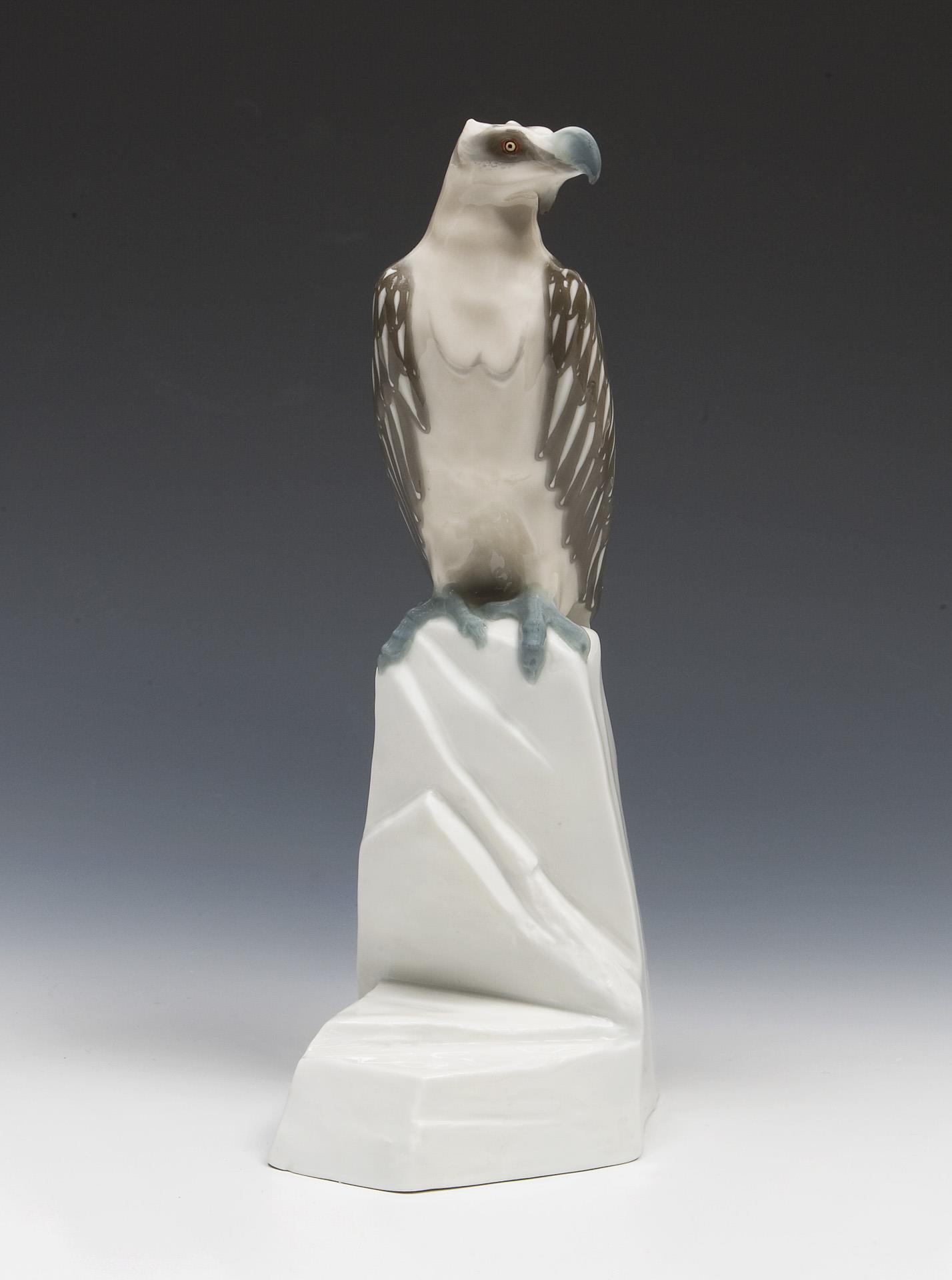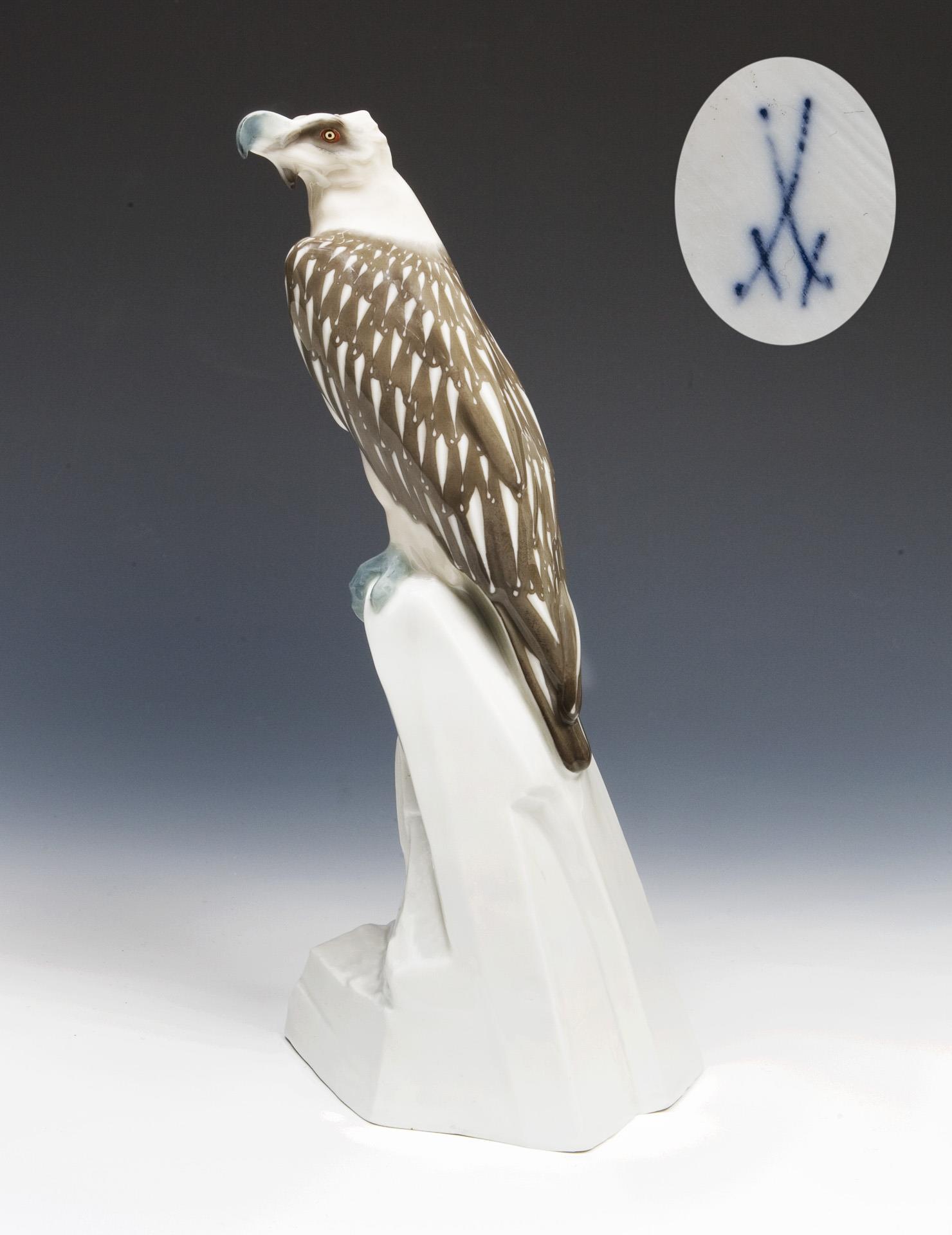 Jugendstil-Tierfigur: Bartgeier auf Felsen. Meissen.