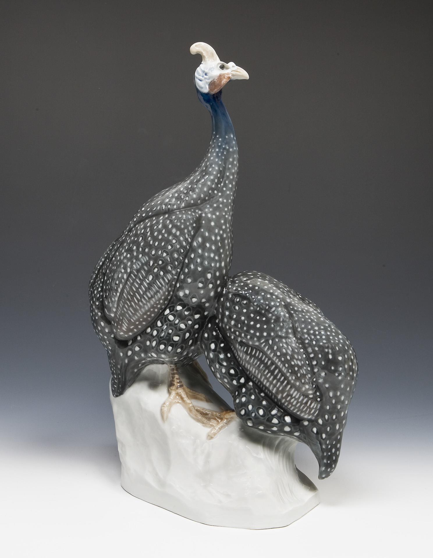 Jugendstil-Tierfigurengruppe: Perlhühner. Meissen.