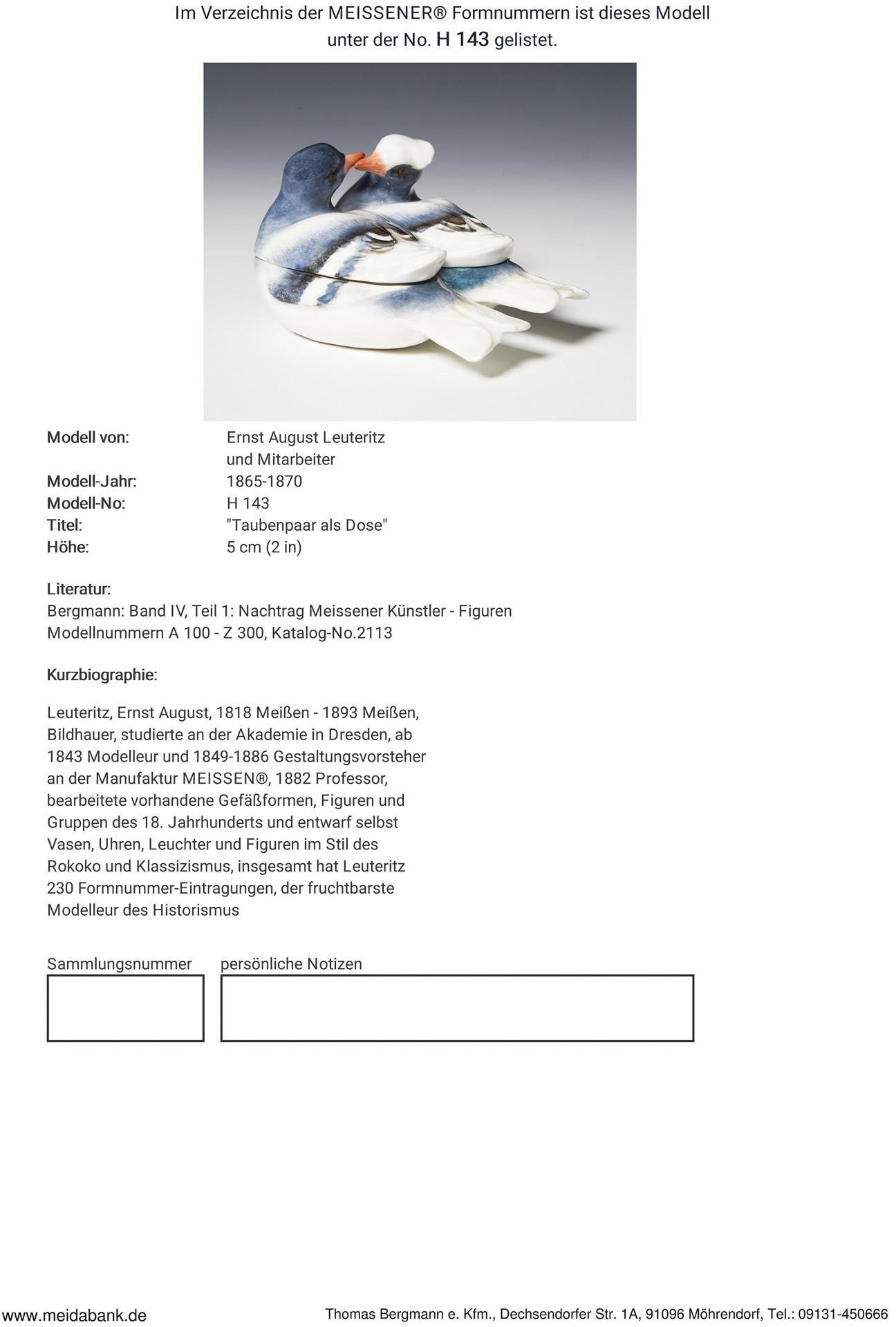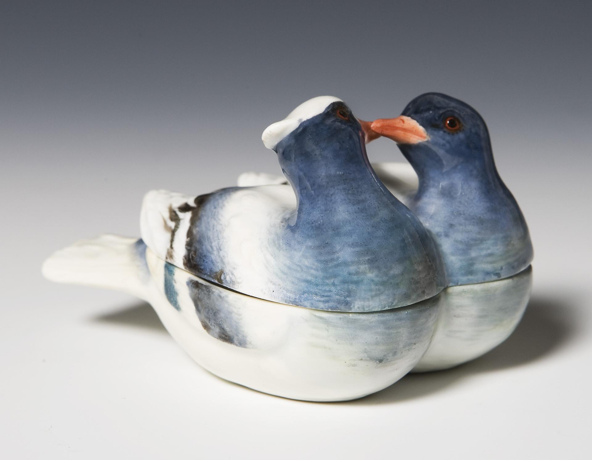 Tierfigurengruppe: Taubenpaar als Dose. Meissen.