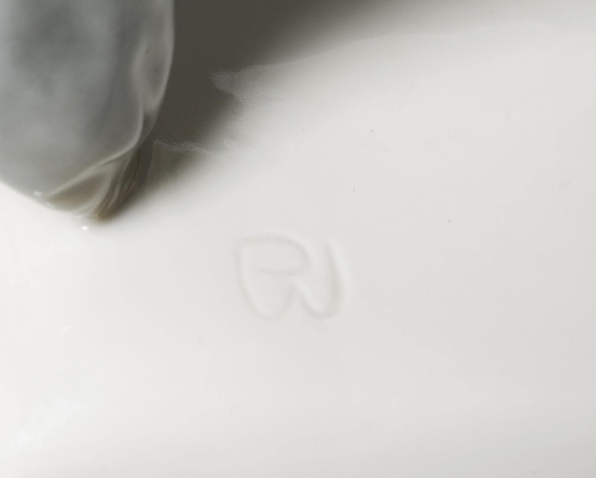 Modell-Jahr: 1906, naturalistisch bemalt, Ritzmarke, Pressmarke, Malermarke, Schwertermarke mit Punkt am Sockel, Künstler-Signet.