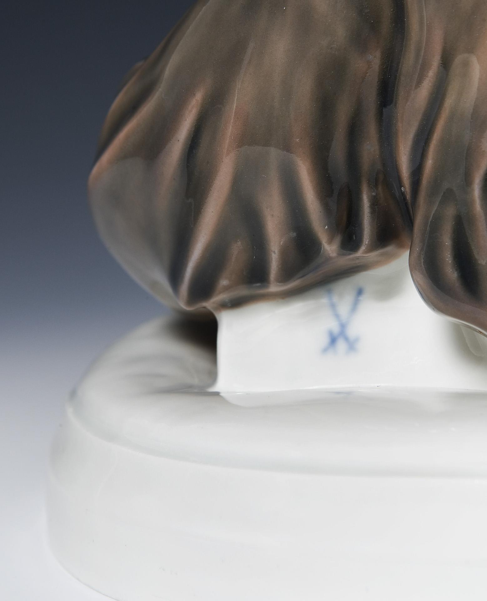 Modell-Jahr: 1912-1913, naturalistisch bemalt, Ritzmarke, Pressmarke, Malermarke, Schwertermarke am Sockel, Künstler-Signet.