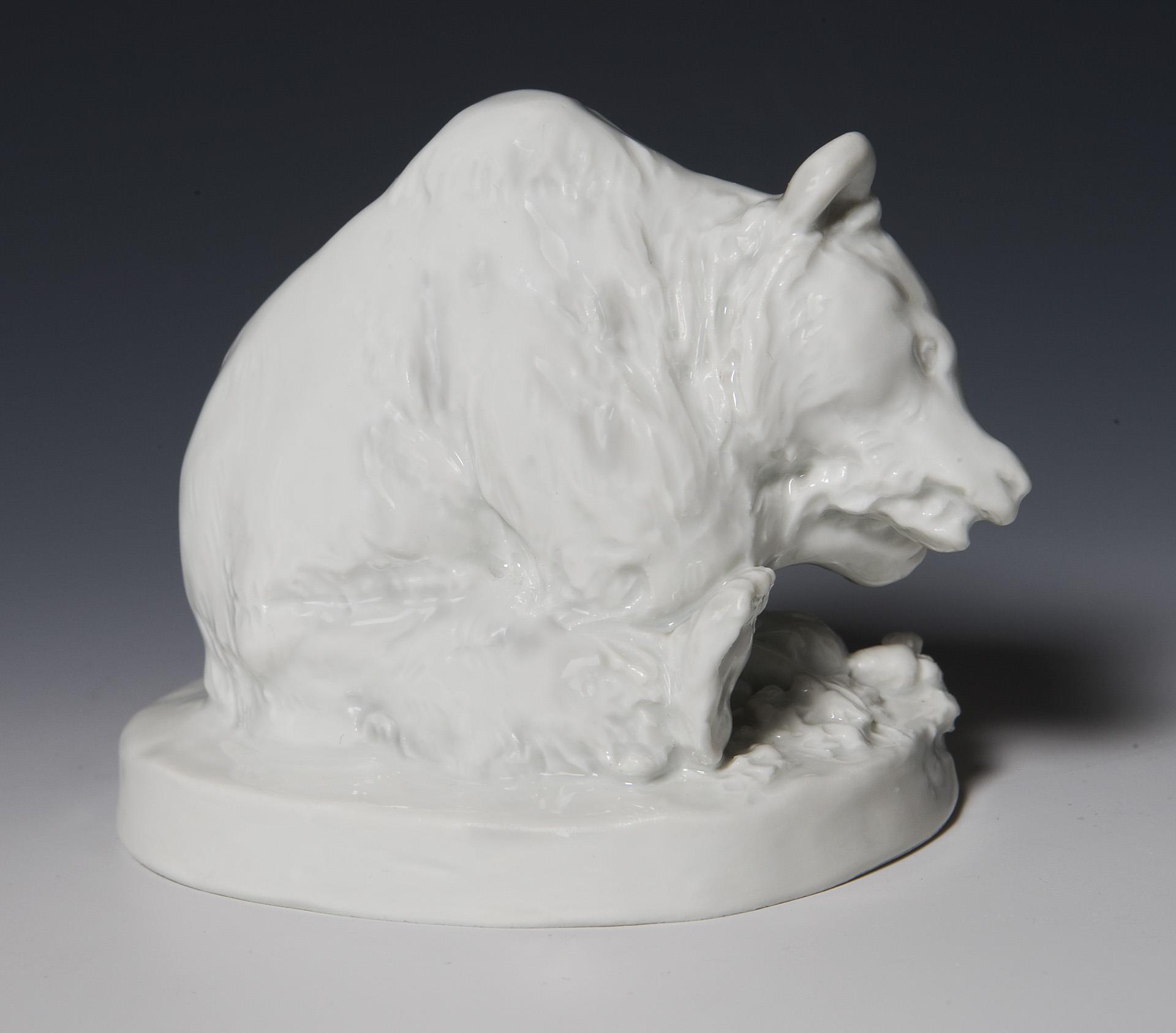 Kleine Tierfigur: Bär, fressend. Meissen.