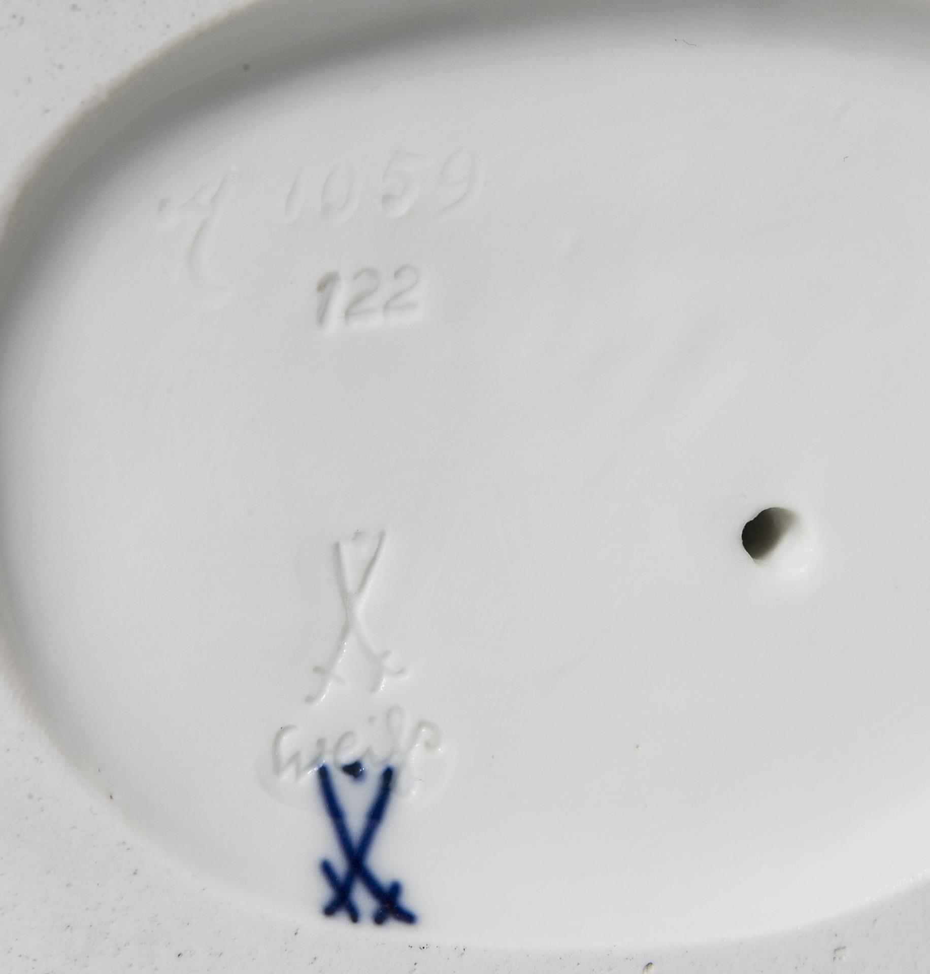 Modell-Jahr: 1922, Weißporzellan, Ritzmarke, Pressmarken, Schwertermarke mit Punkt, Künstler-Signet.