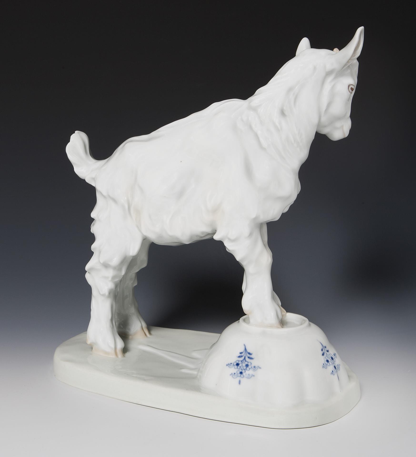 Große Tierfigur: Ziegenbock auf Napf. Meissen.