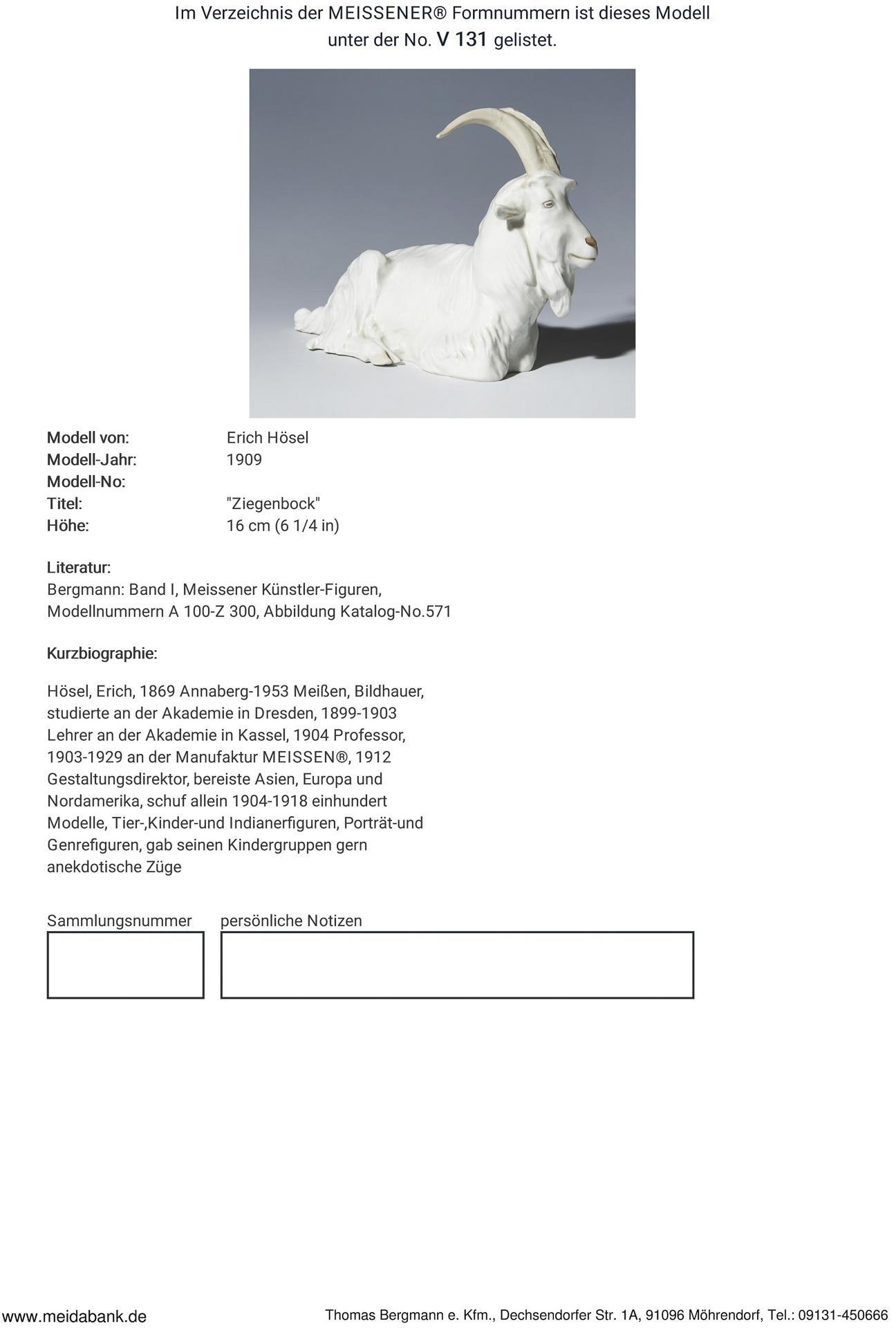 Hösel, Bildhauer, Modelleur, studierte an der Akademie in Dresden. 1899-1903 Lehrer an der Akademie in Kassel, 1904 Professor. 1903-1929 an der Manufaktur Meissen Leiter der Gestaltungsabteilung, 1930-1950 freischaffend tätig * Partnerauktion Bergmann.