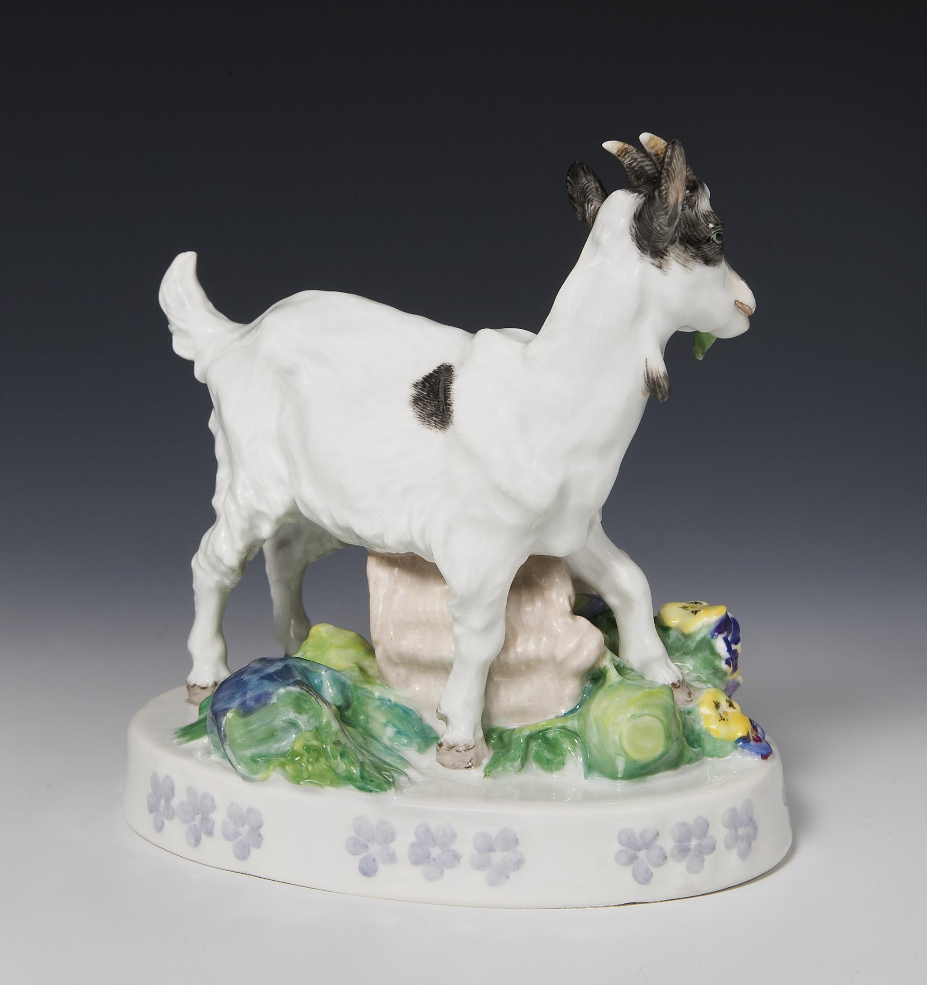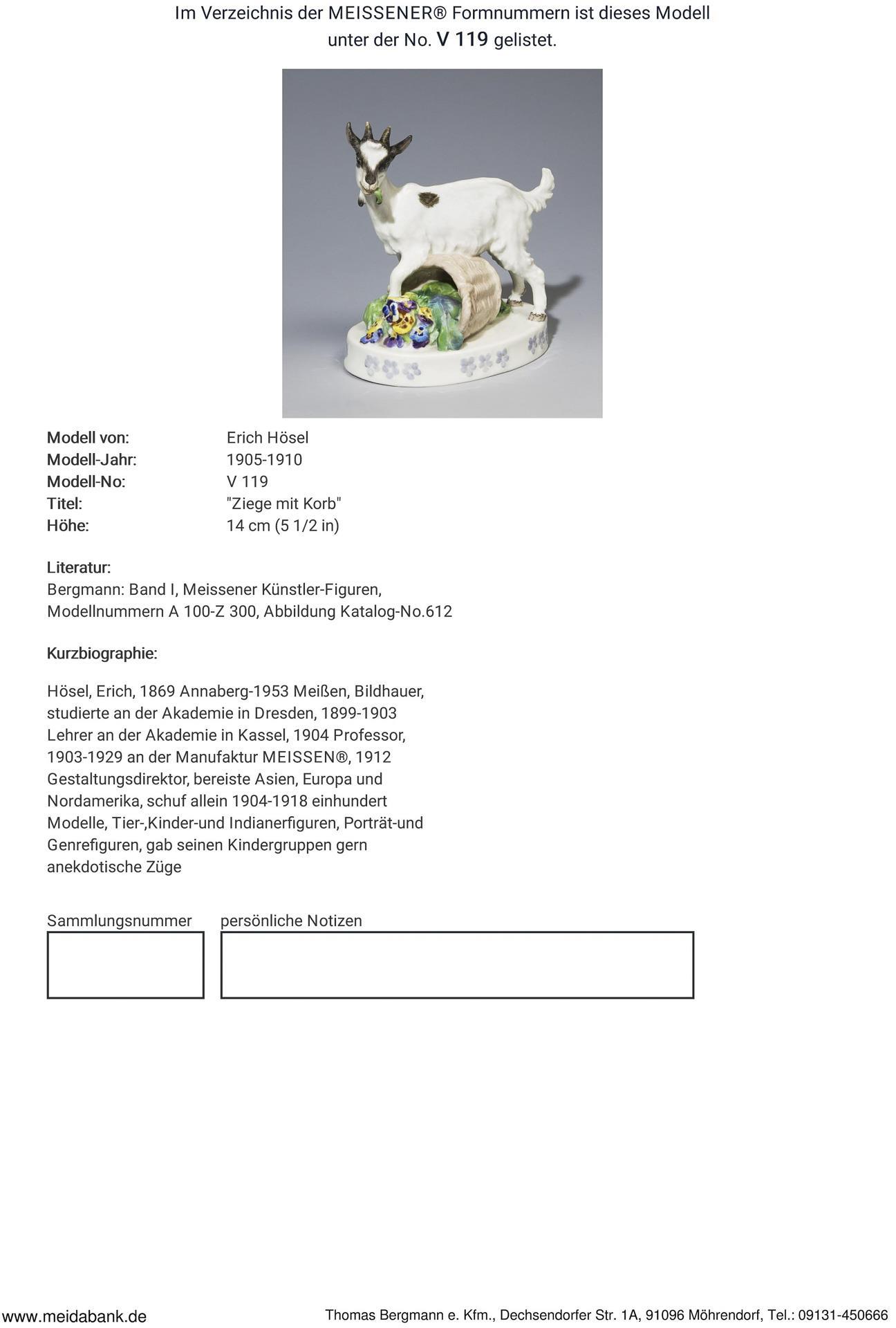 Tierfigur: Ziege mit Korb. Meissen.