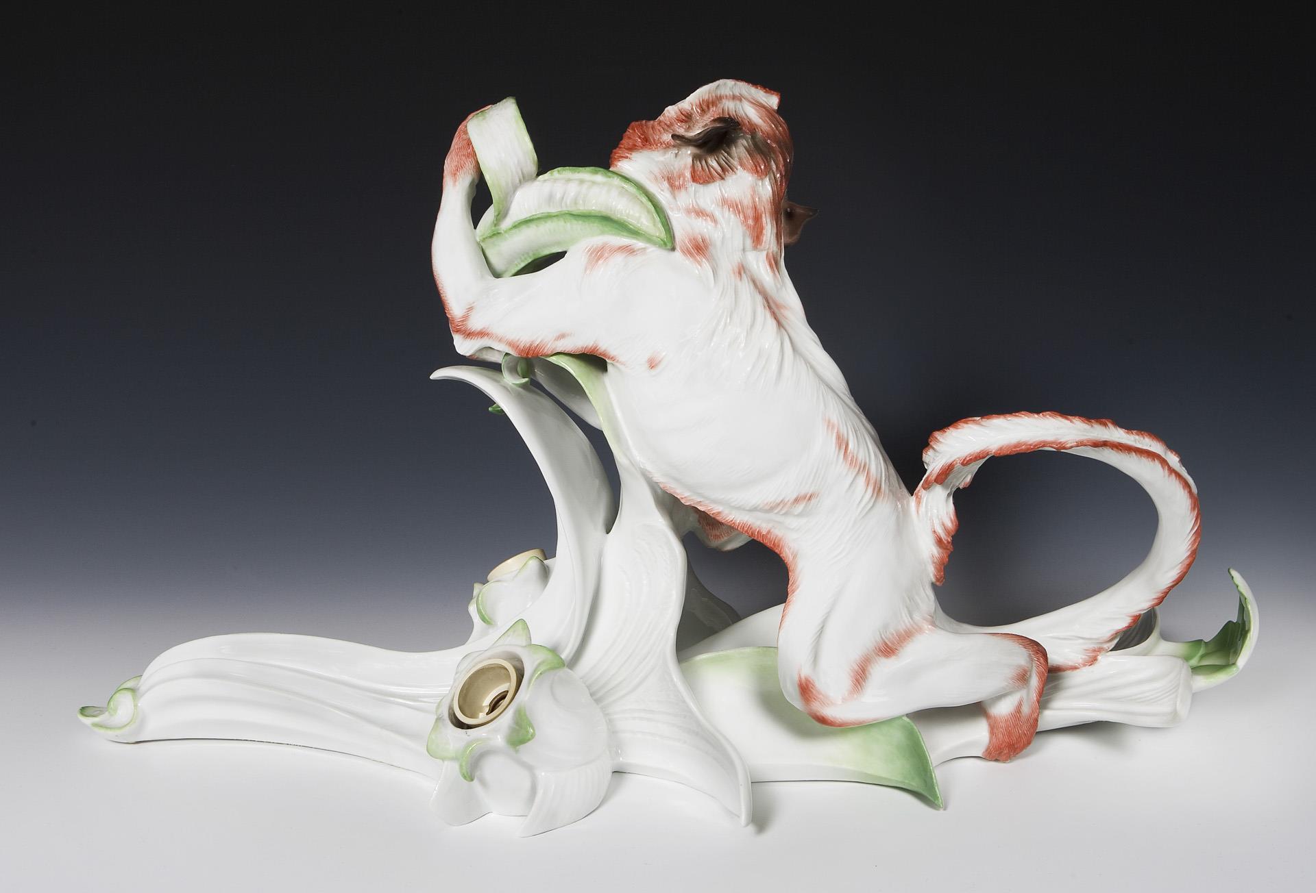 Große Art déco-Tierfigur: Affe als Wandleuchter. Meissen.