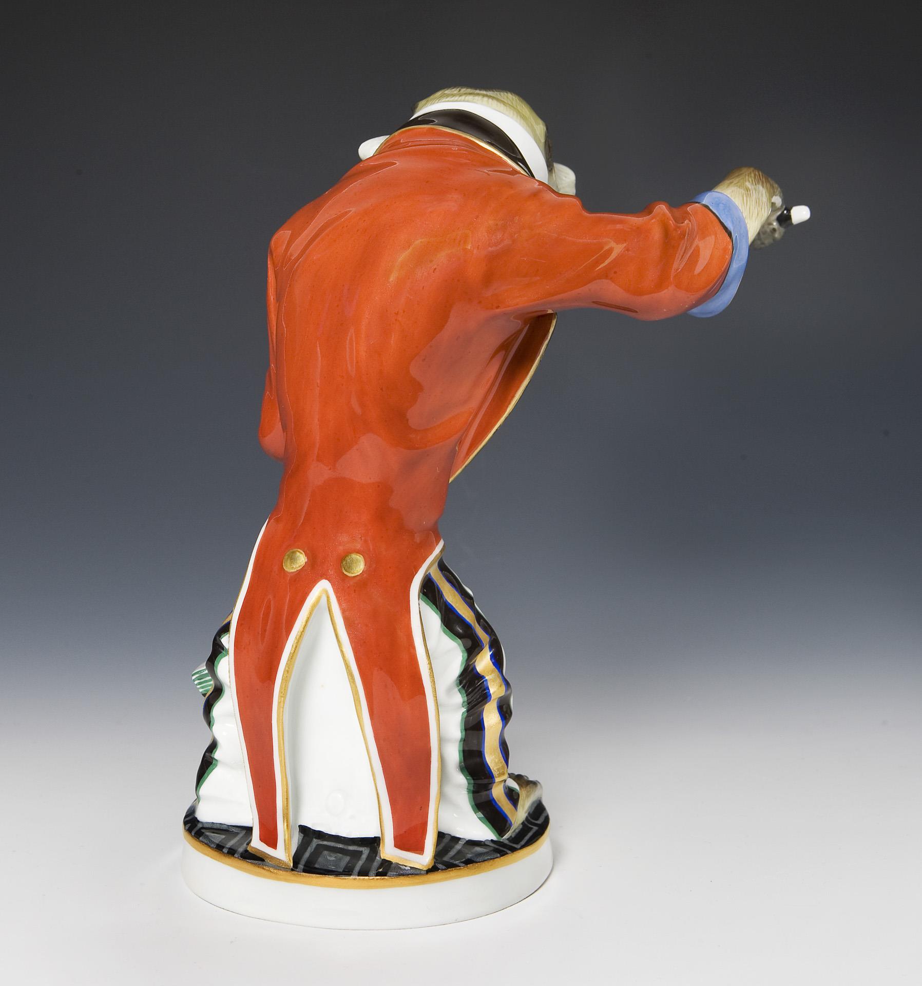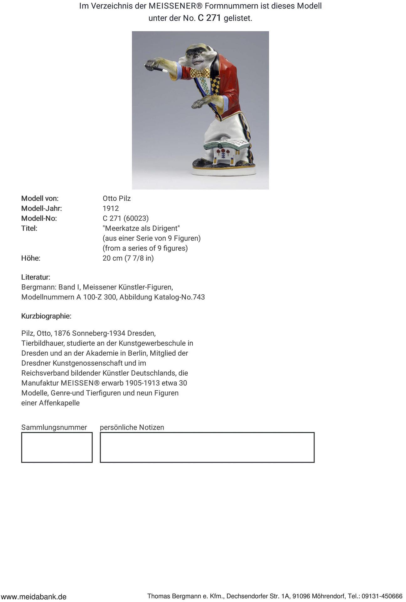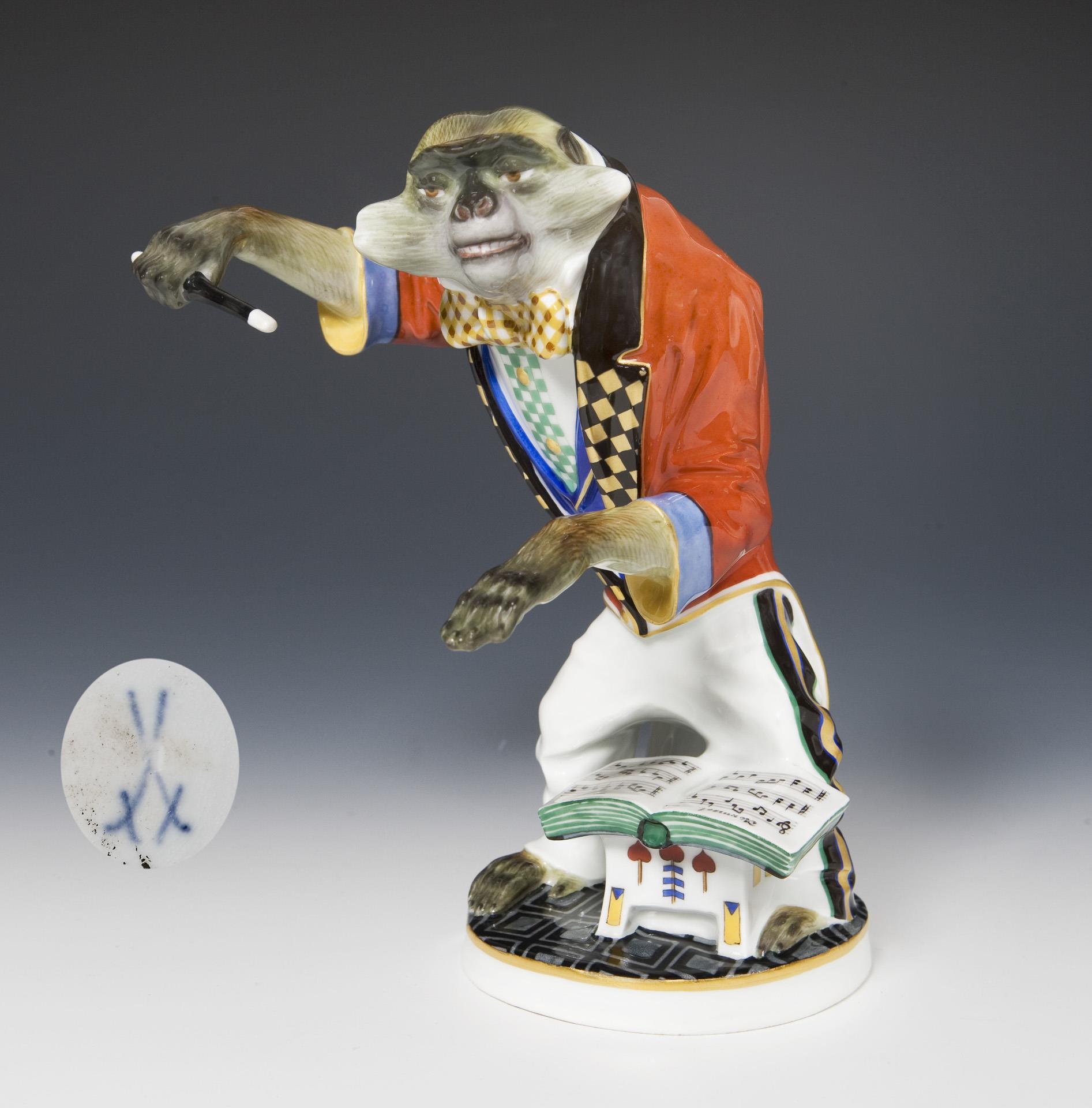 Jugendstil-Figur der Affenkapelle: Meerkatze als Dirigent. Meissen.